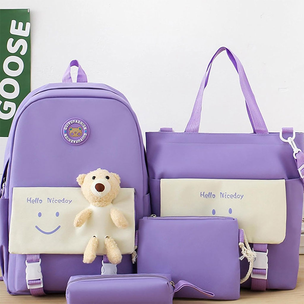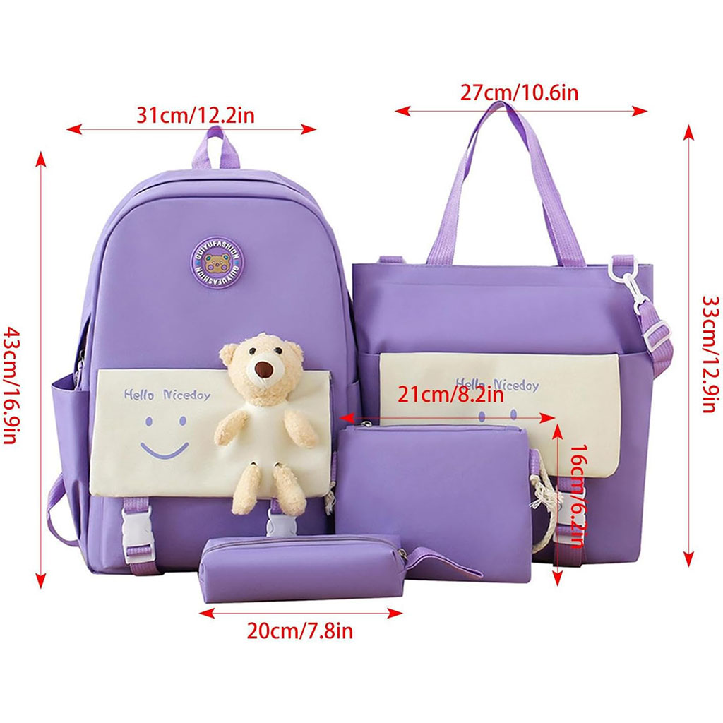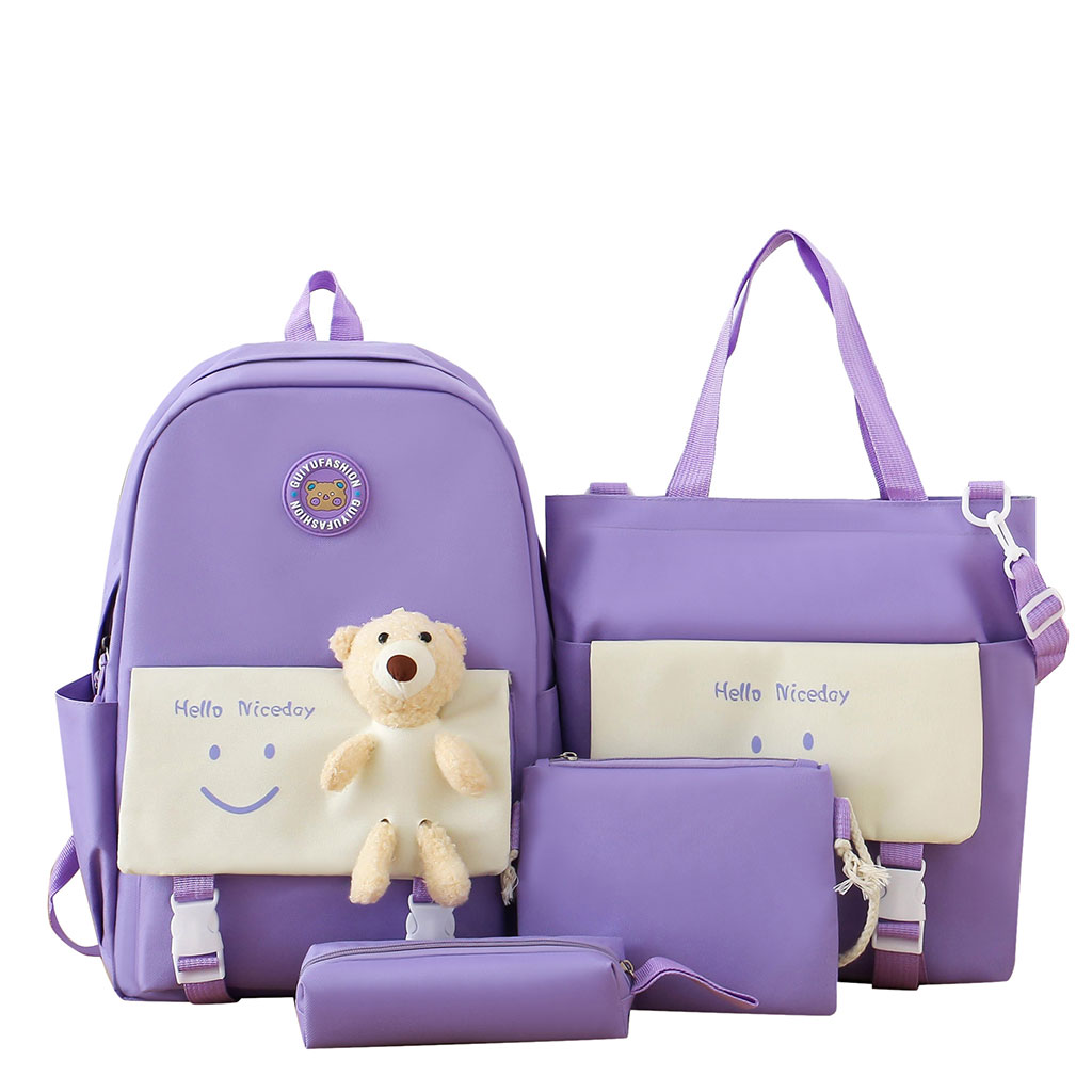 Sac À Dos Scolaire Nice Day 4pcs en toile pour Adolescents Et Filles