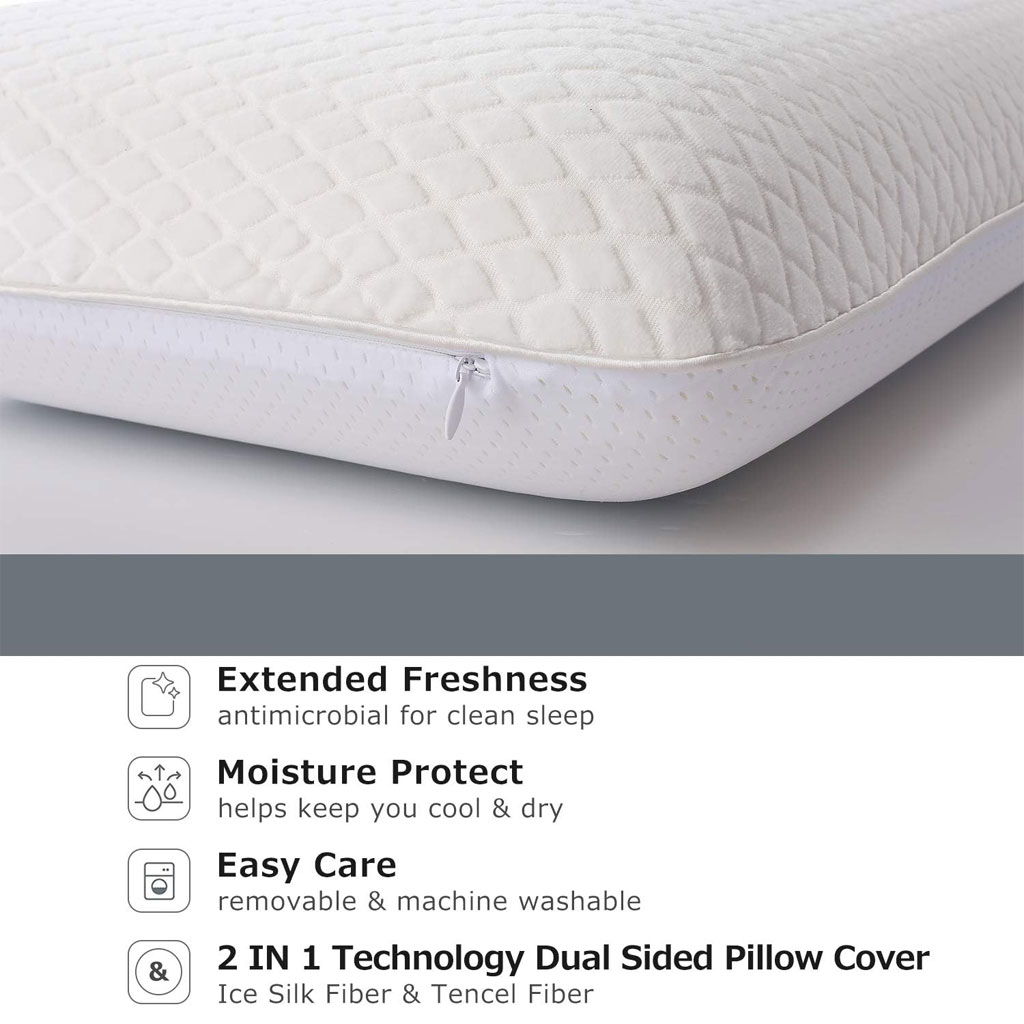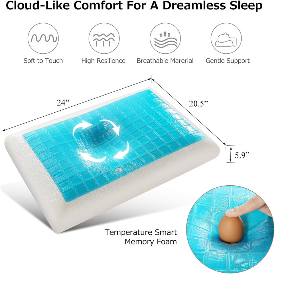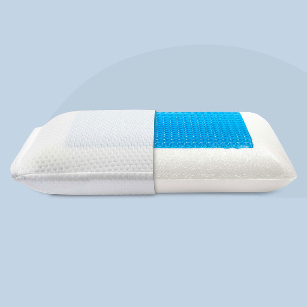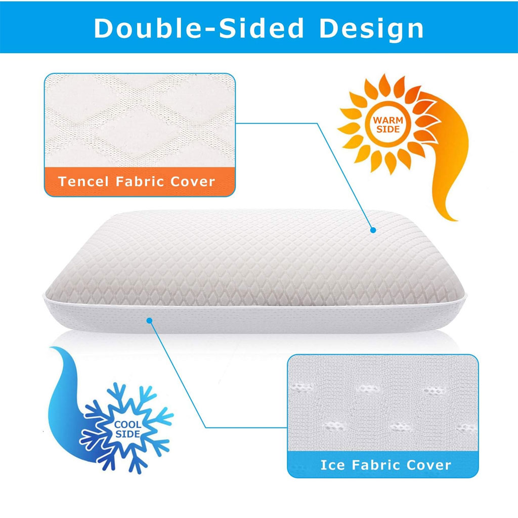 تقنية الاستخدام المزدوج (صيف/شتاء): * جانب الجل المبرد (Cool Gel): يمتص حرارة الرأس ويمنحك إحساساً بالانتعاش يهدئ أعصابك في الليالي الحارة.
