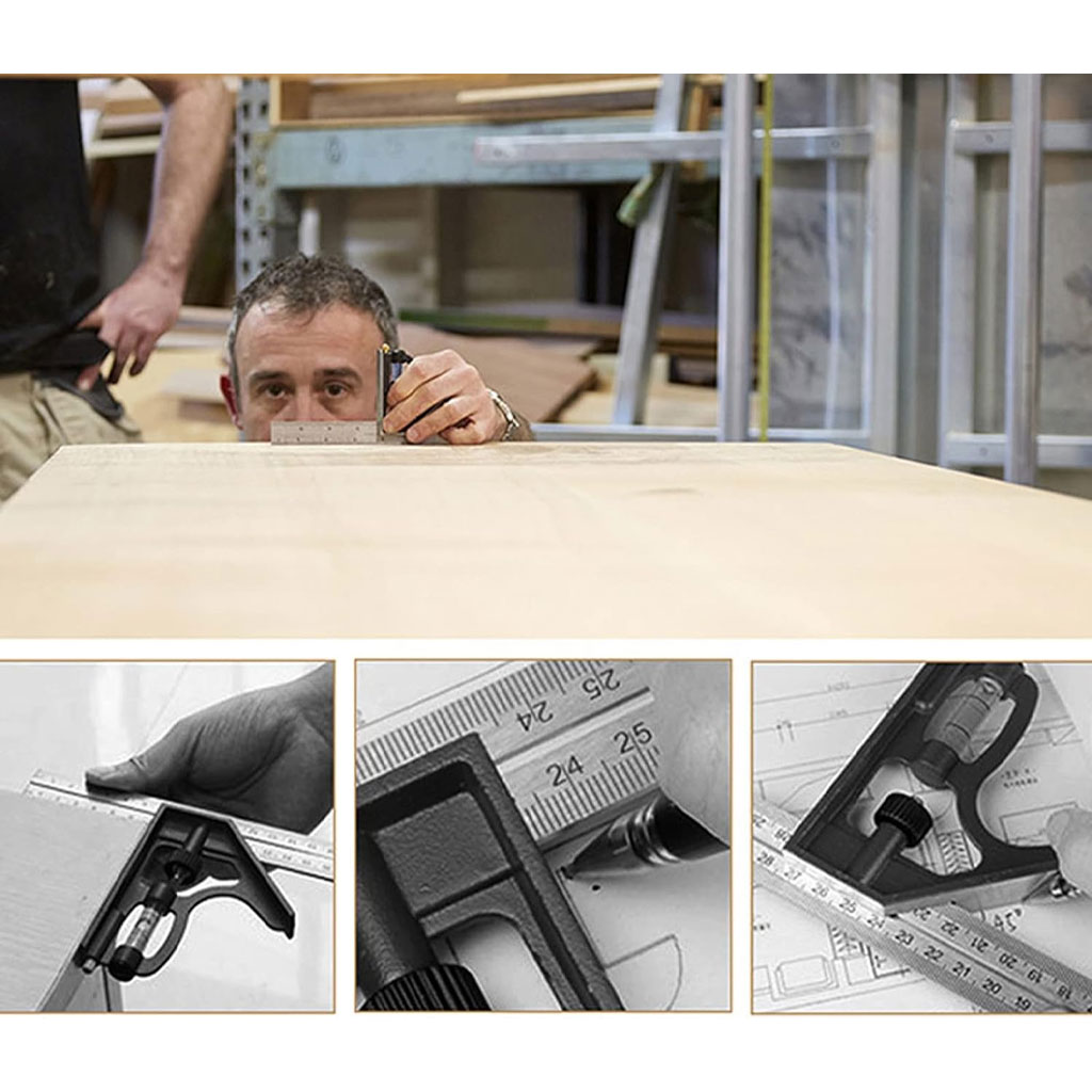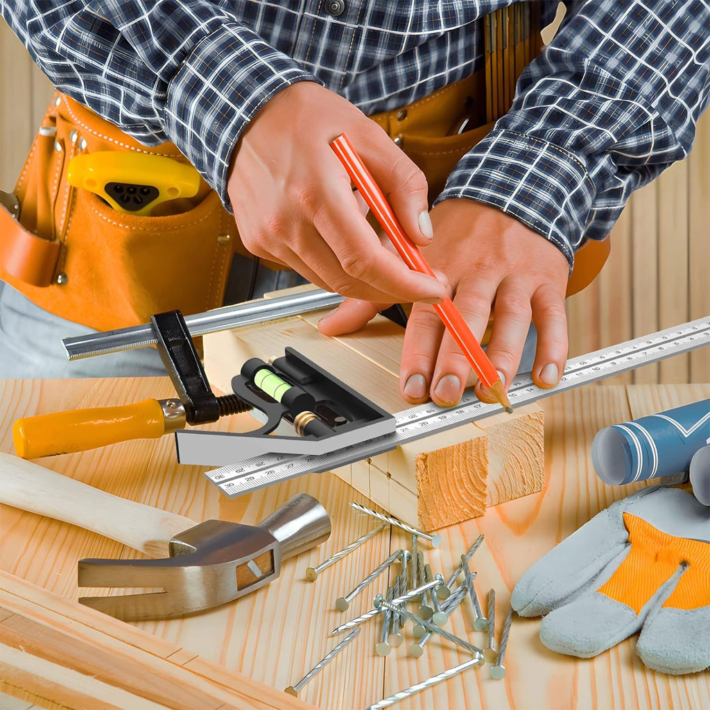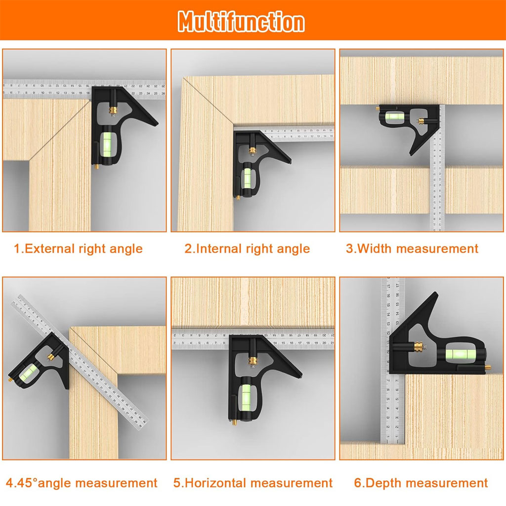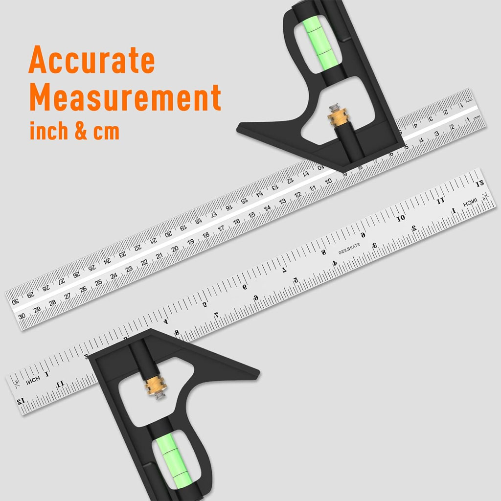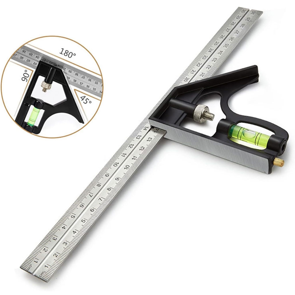 Outils de Menuiserie Carrée en Acier Inoxydable de 12'/300 mm, Règle de 45/90 Degrés avec Niveau à Bulle.
