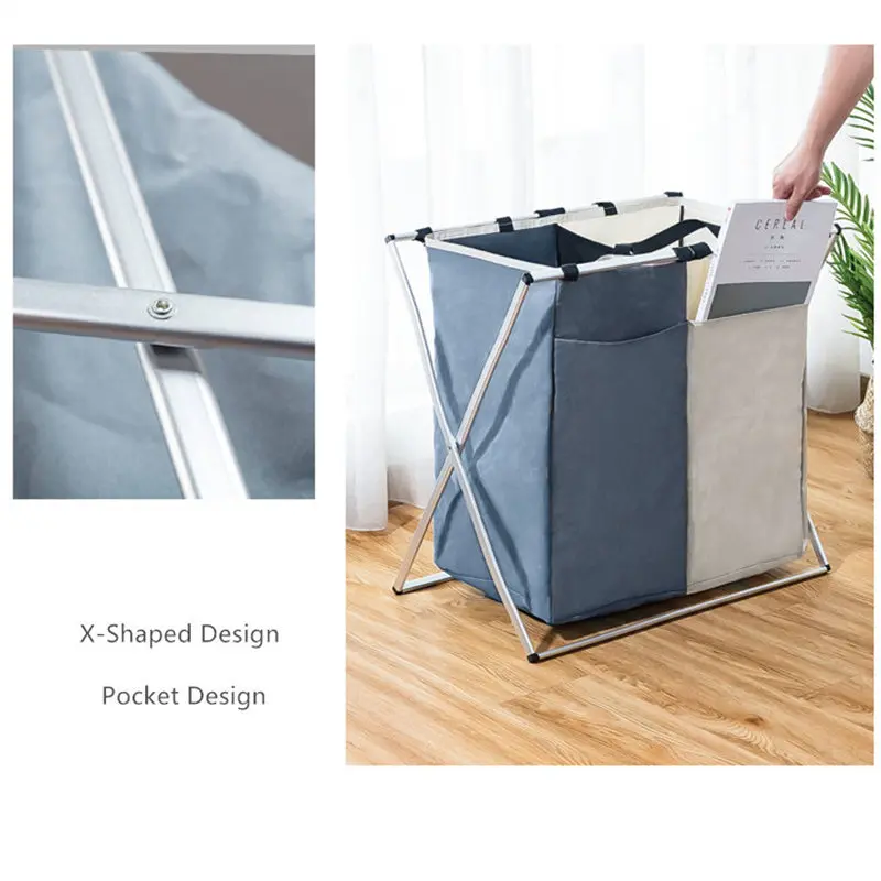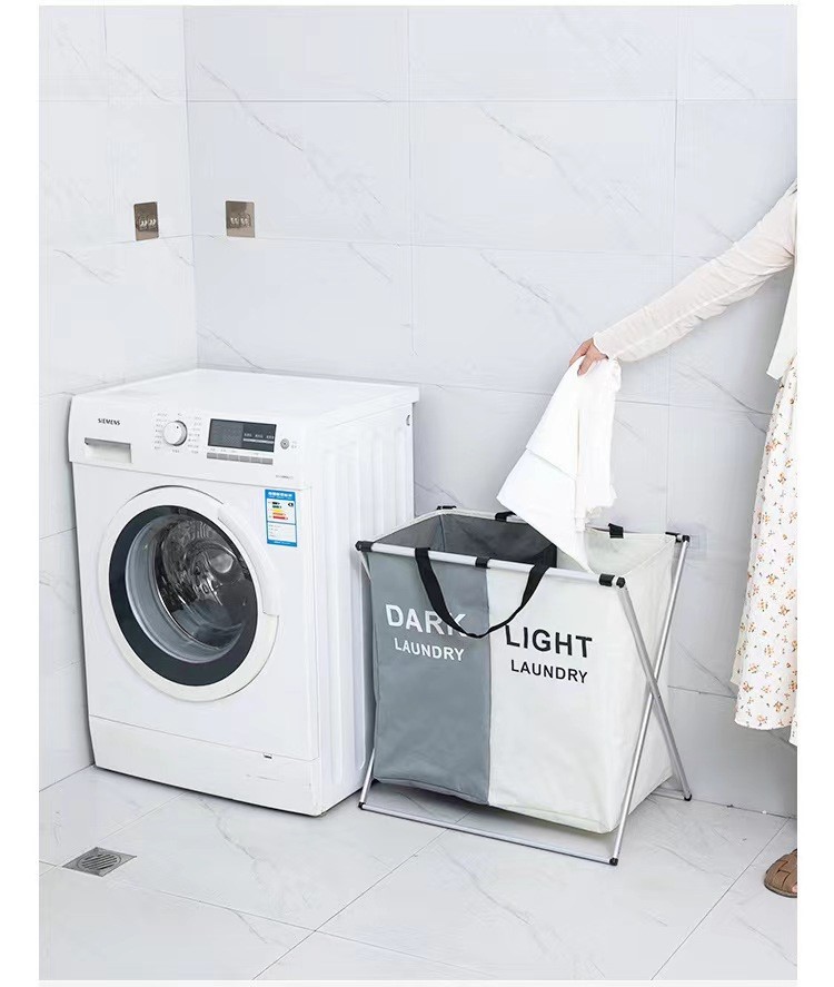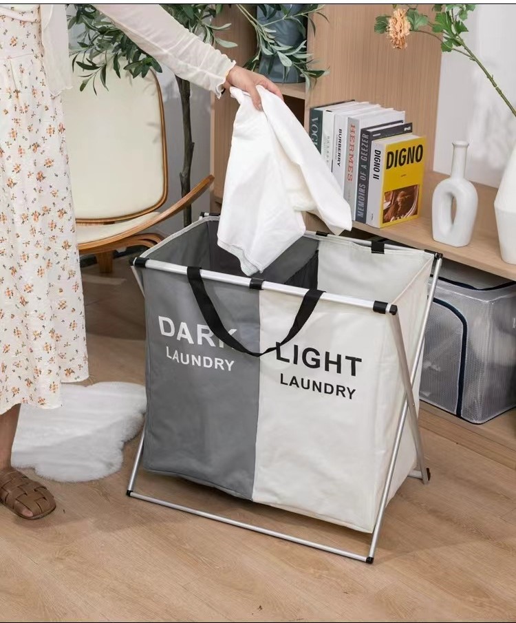 Panier à linge sale pliable avec 2 grilles pour séparer les vêtements