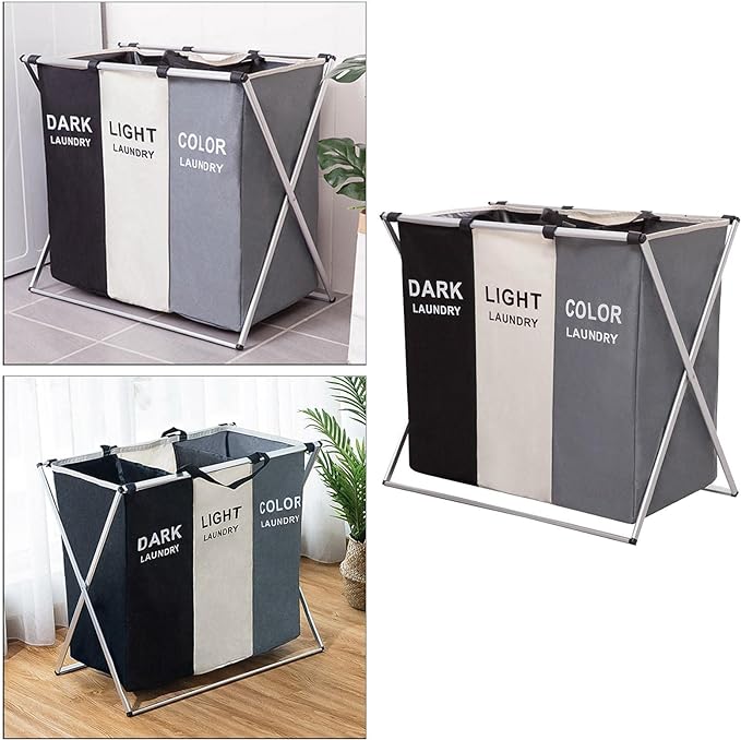 •444 تقييم•تم بيع +826Panier à linge sale pliable avec 3 grilles pour séparer les vêtements V3