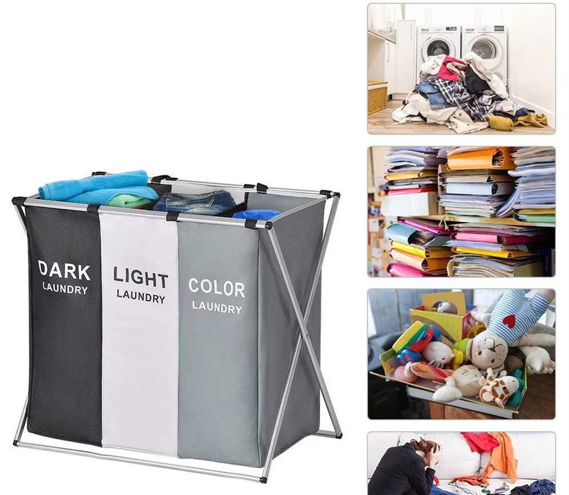 Panier à linge sale pliable avec 3 grilles pour séparer les vêtements V3