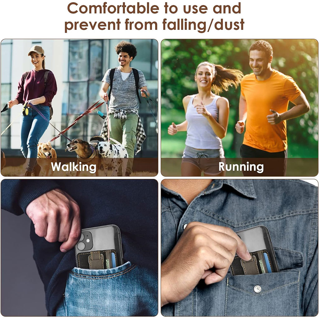 【Capacité de rangement jusqu'à 4 cartes】Notre étui porte-cartes pour téléphone est doté de 2 emplacements pour cartes. Plus fin qu'un portefeuille classique, il offre une capacité supérieure pouvant contenir jusqu'à 4 cartes ou quelques billets. Les cartes sont faciles à retirer et l'étui se transporte aisément. Son cuir PU texturé, ses nuances de couleurs et ses finitions soignées lui confèrent une allure raffinée et tendance. Cet étui est idéal pour les hommes et les femmes de tous âges. • 【Dites adieu aux portefeuilles encombrants】Notre étui de téléphone ultra-fin avec support intégré est léger et facile à utiliser. Emportez quelques cartes et de l'argent liquide sans vous encombrer de votre sac à main ; il vous suffit de sortir votre téléphone pour payer par carte ou dans les transports en commun. Il vous permet de ranger facilement vos cartes et votre argent lors de vos déplacements, pour une vie plus pratique. • 【Porte-cartes autocollant】Notre porte-cartes pour téléphone portable est doté d'un adhésif puissant, facile à installer et qui ne se décolle pas facilement. De plus, son support élastique réglable permet une prise en main plus facile que jamais de votre smartphone. Son design ergonomique offre un confort d'utilisation optimal. Petit, mais très pratique et fonctionnel, il est idéal pour les téléphones portables. • 【Porte-cartes en cuir ultra-fin】Notre porte-cartes est conçu en cuir PU de haute qualité, ultra-fin, léger, durable et résistant. Doux au toucher, il conserve son élasticité même après une longue période d'inutilisation. Grâce à sa forme fine, il se glisse facilement dans une poche sans vous encombrer. • 【Utilisation polyvalente】Notre étui porte-cartes pour téléphone mesure 10 x 6,5 x 0,5 cm et vous permet de vous passer de votre portefeuille lors de vos déplacements. Emportez simplement votre téléphone avec cet étui, idéal pour le sport, les voyages, les courses ou toute autre activité physique. Un véritable petit portefeuille pour votre précieux téléphone, compatible avec la plupart des smartphones. Remarque : Il est recommandé de coller l'étui sur la coque du téléphone et non directement sur l'appareil.