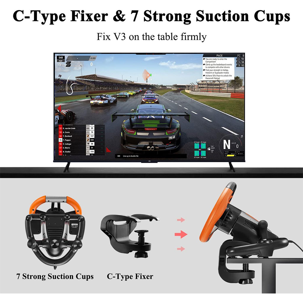 PXN V3 Pro Volant de Course à 180° avec Pédales et Retour de Vibration