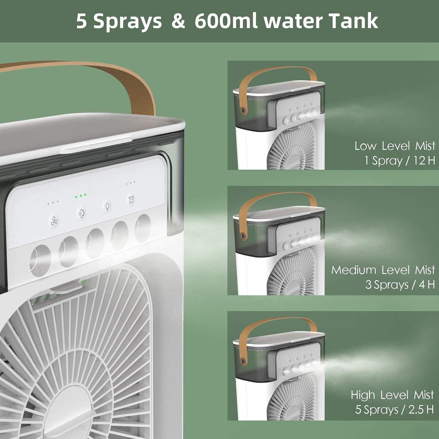 Refroidisseur d'air portable 3en1 , humidificateur, veilleuses LED , à 3 Vitesses, Pour Maison Et Bureau