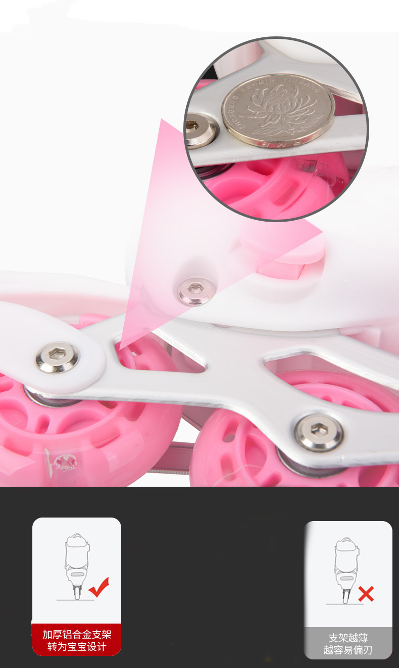 Taille réglable : utilisez la conception de bouton facile à régler, choisissez la taille qui vous convient le mieux, appuyez et maintenez le bouton réglable et étirez la tête d'orteil pour ajuster la taille de la chaussure, au fur et à mesure que votre enfant grandit le meilleur choix. • Doux et confortable : composé de matériau PP de qualité supérieure, de maille mezzanine, de cuir PVC et de mousse EPE pour un grand confort de conduite, profitez d'une conduite stable, silencieuse et confiante sur un cadre en aluminium renforcé, expérience de conduite sur roues en PU. Les roulements précis à double blindage ABEC 7 et les roues en PU glissantes offrent une conduite glissante et confortable. • Lumières arc-en-ciel : toutes les roues s'allument lorsque les patins à roues alignées fonctionnent, et les enfants seront heureux lorsqu'ils rouleront avec des roues auto-génératrices colorées et sûres piles. • Boucle de sécurité : les patins à roulettes sont conçus avec des lacets standard, des sangles en V, une triple protection à boucle haute résistance pour améliorer la sécurité du patineur, excellente qualité, parfait pour les jeunes patineurs, confort et maintien, pas besoin d'attacher vos lacets. • Cadeau parfait : les patins à roues alignées sont réglables en taille pour positionner correctement les pieds de votre enfant, offrant un bon équilibre et un meilleur contrôle pendant le patinage, un cadeau surprise pour les anniversaires, les vacances, les événements spéciaux pour les enfants ou les amis, faites-les crier d'excitation et de bonheur.