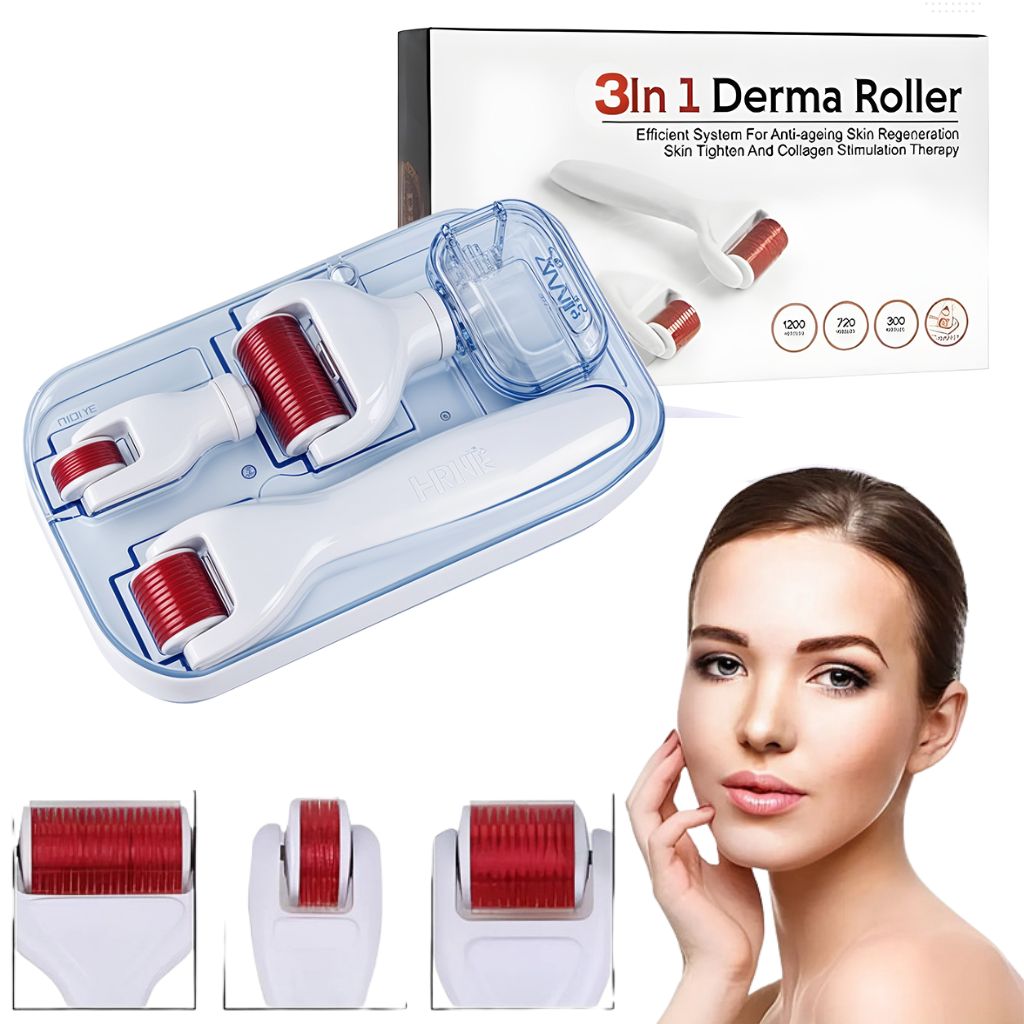 Rouleau Derma 3 en 1 Aiguilles en alliage inoxydable Avec 3 têtes