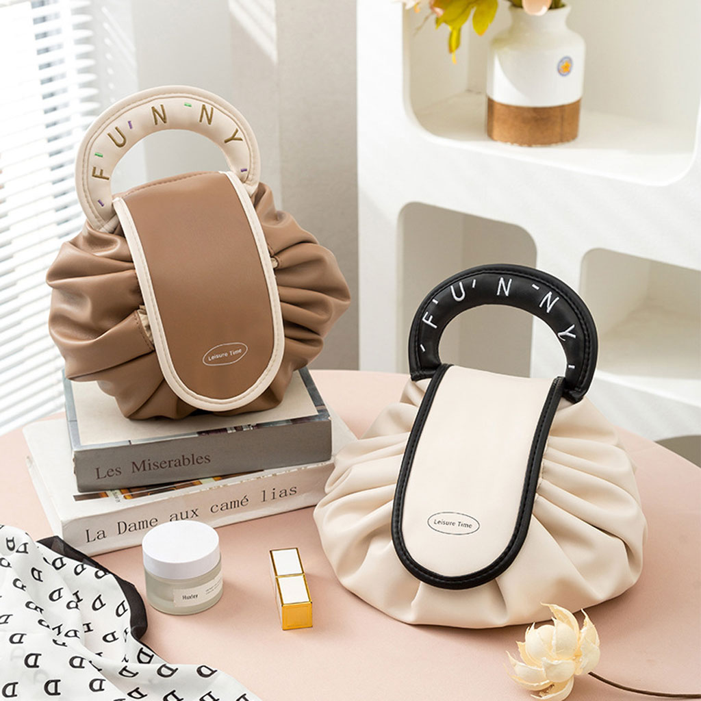 ➪Apparence mignonne et élégante : cette trousse de maquillage a une apparence mignonne et élégante qui vous permettra de vous démarquer de la foule. Il est également doté d'un cordon de serrage qui vous permet d'accéder facilement à vos produits cosmétiques et d'un bouton-pression en métal qui les maintient en sécurité. De plus, il possède une poignée innovante qui le rend facile à transporter. • ➪Excellente protection : assurez-vous que vos produits cosmétiques restent secs et protégés dans cette trousse de maquillage esthétique. Le cuir PU résistant aux taches offre un rangement sûr tandis que le sandwich en coton perlé et la doublure en polyester offrent durabilité et douceur. • ➪Pratique : gardez vos articles de maquillage soigneusement rangés dans cette trousse esthétique. Cette trousse de maquillage a une taille de 11,8*12,6*1,8 pouces/30*32*4,5 cm, ce qui est idéal pour ranger des objets plus petits tels que des pinceaux, des rouges à lèvres et des fards à paupières. L'intérieur dispose de deux poches zippées séparées pour que vous puissiez facilement trier et accéder à vos produits cosmétiques. • ➪Compagnon de voyage pratique : cette trousse à maquillage multifonction peut être utilisée comme sac à collation, sac de voyage ou sac d'activités de plein air. Il est suffisamment spacieux pour ranger vos essentiels, tels que du maquillage, des articles de toilette, des collations et bien plus encore. Il est également facile à transporter et durable, ce qui le rend idéal pour toutes les occasions. • ➪Choix de cadeau parfait : montrez votre attention avec cette trousse de maquillage polyvalente, qui sert également de cadeau élégant pour les amis et la famille lors des vacances comme Thanksgiving, Halloween, Noël, la Saint-Valentin ou les anniversaires. Utilisez-le pour ranger et organiser vos produits cosmétiques, ou offrez-le comme un cadeau attentionné, à la fois pratique et beau.