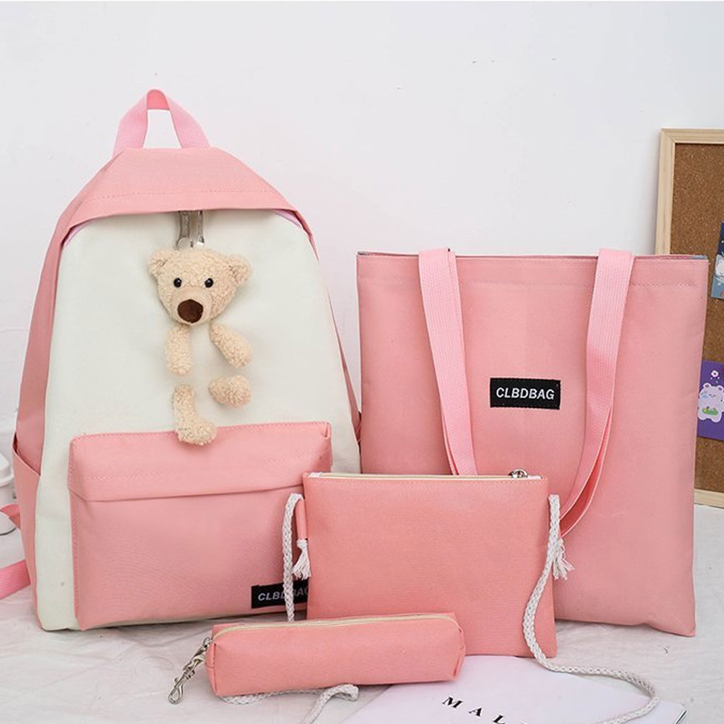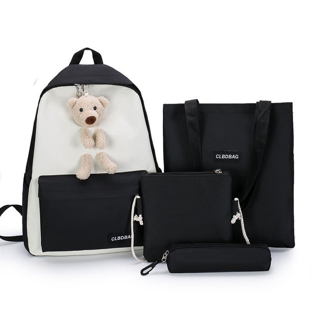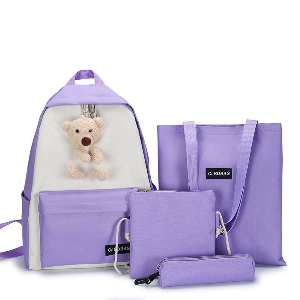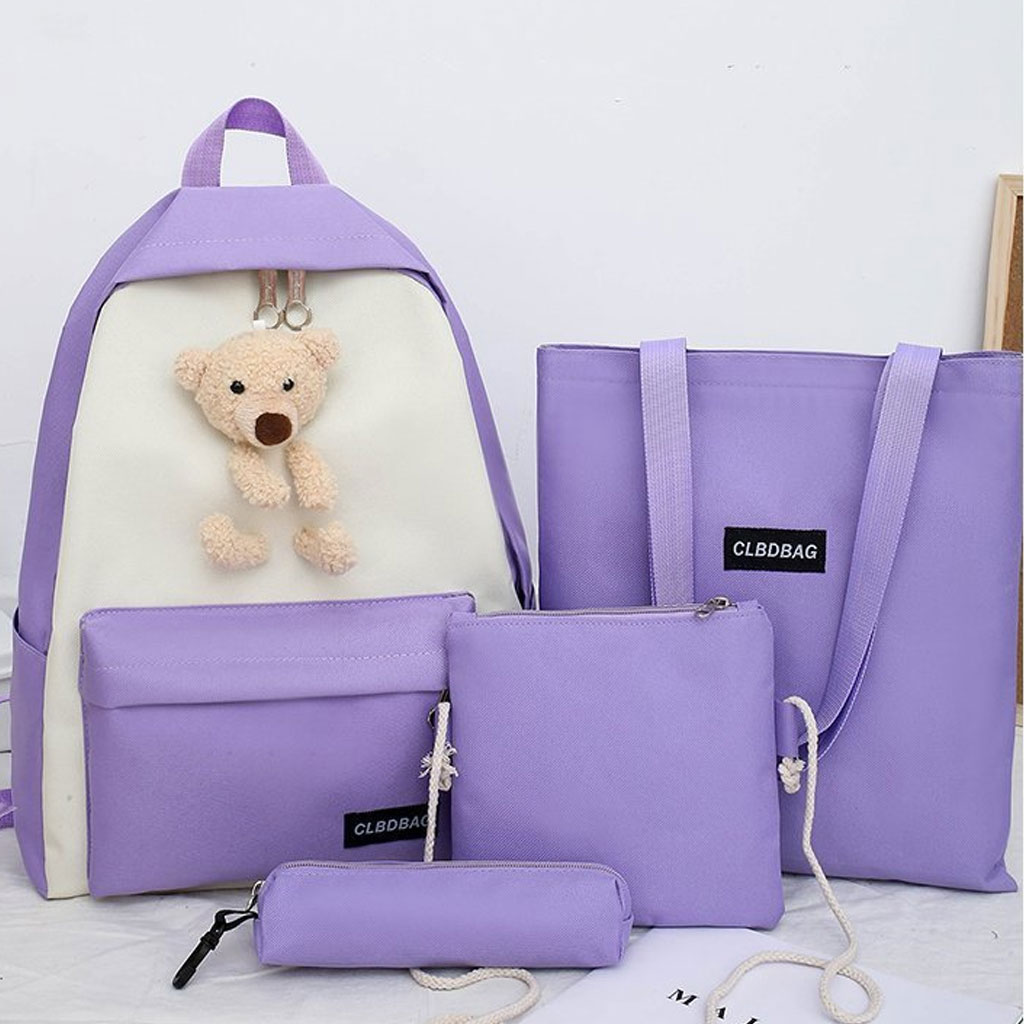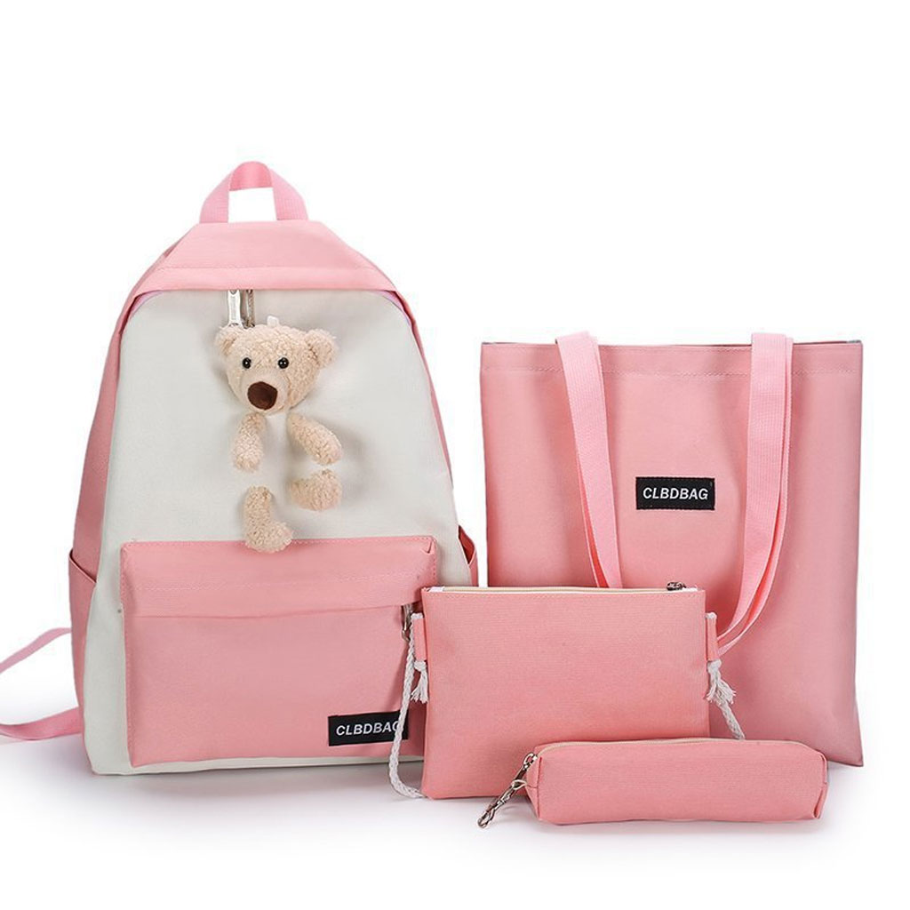 Sac À Dos Scolaire Ours 4pcs en toile pour Adolescents Et Filles