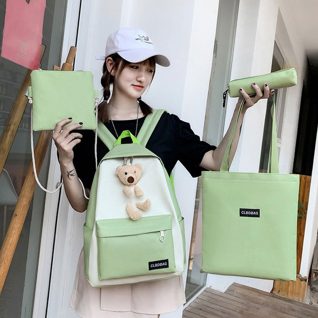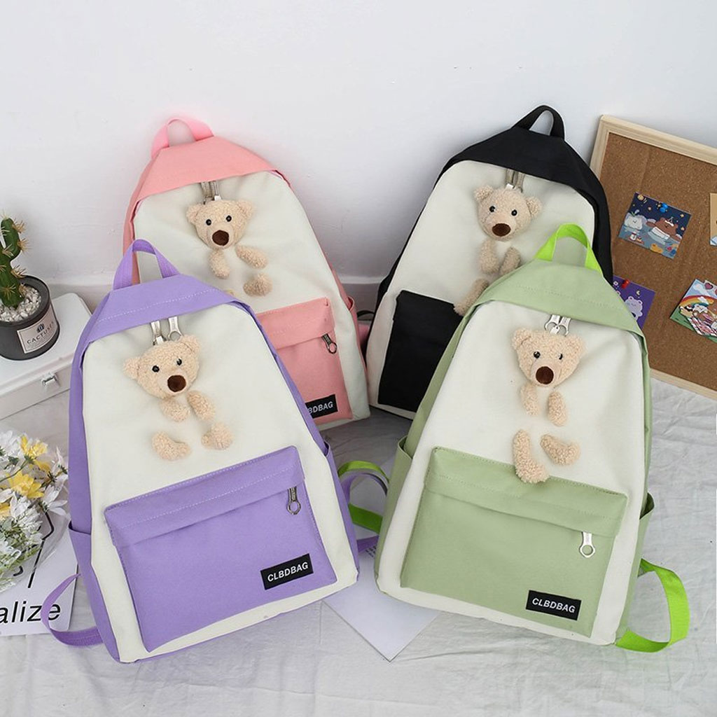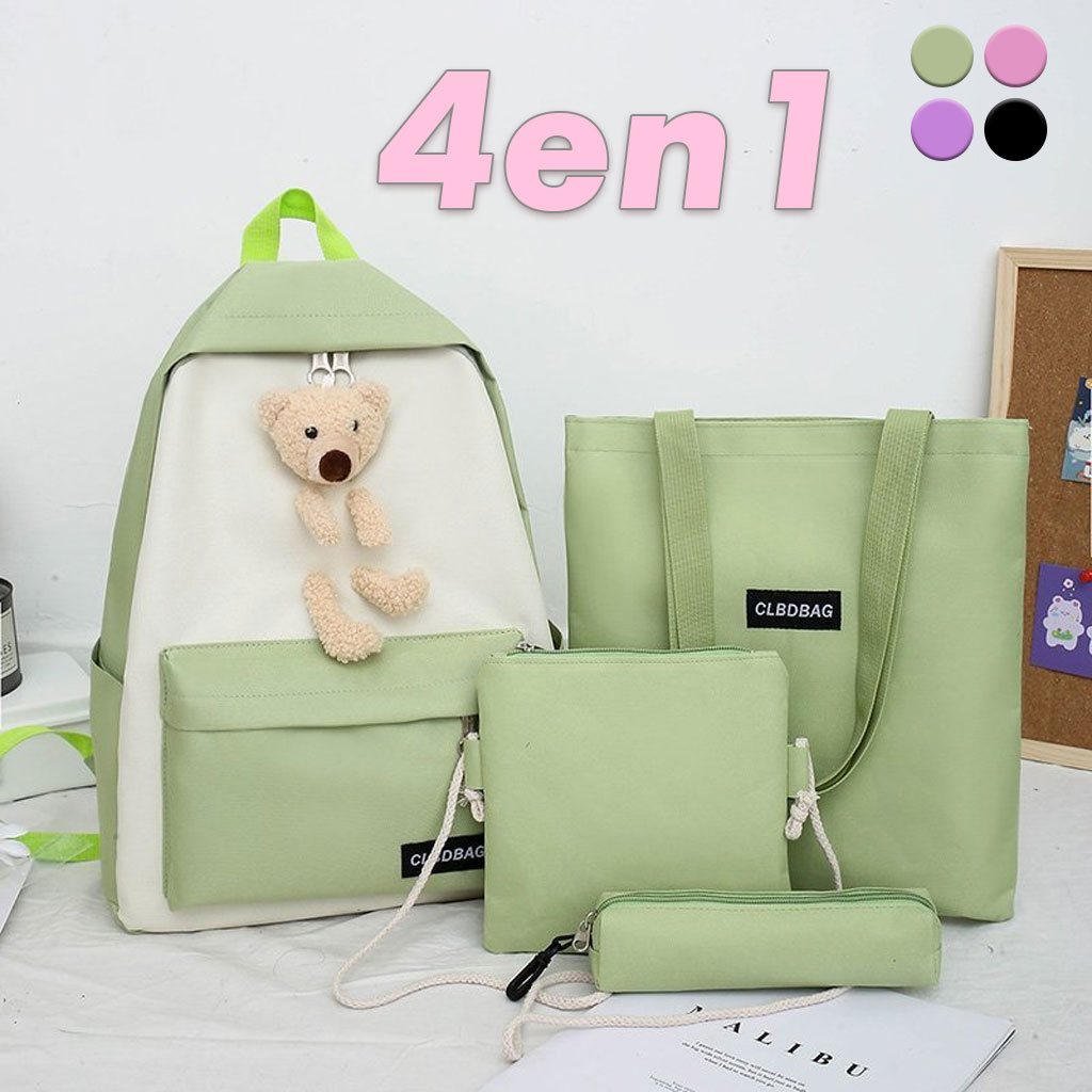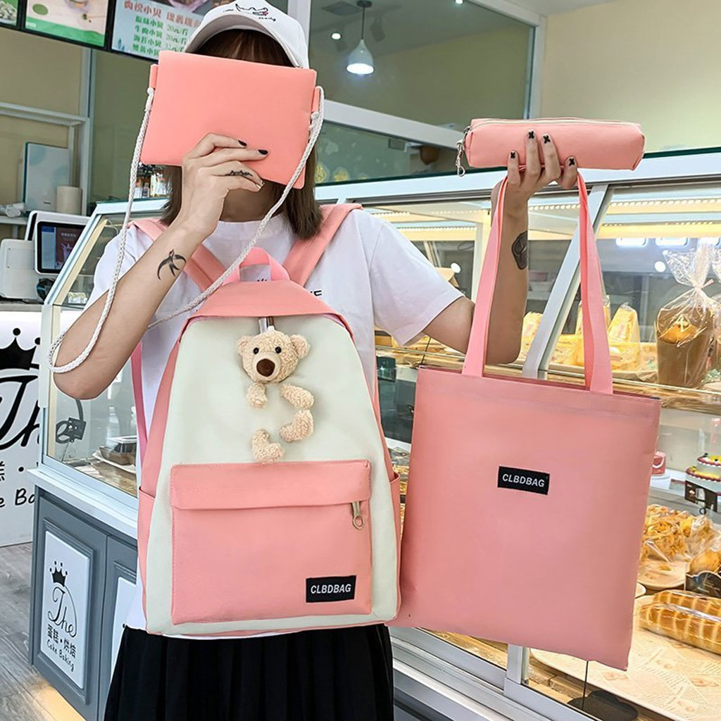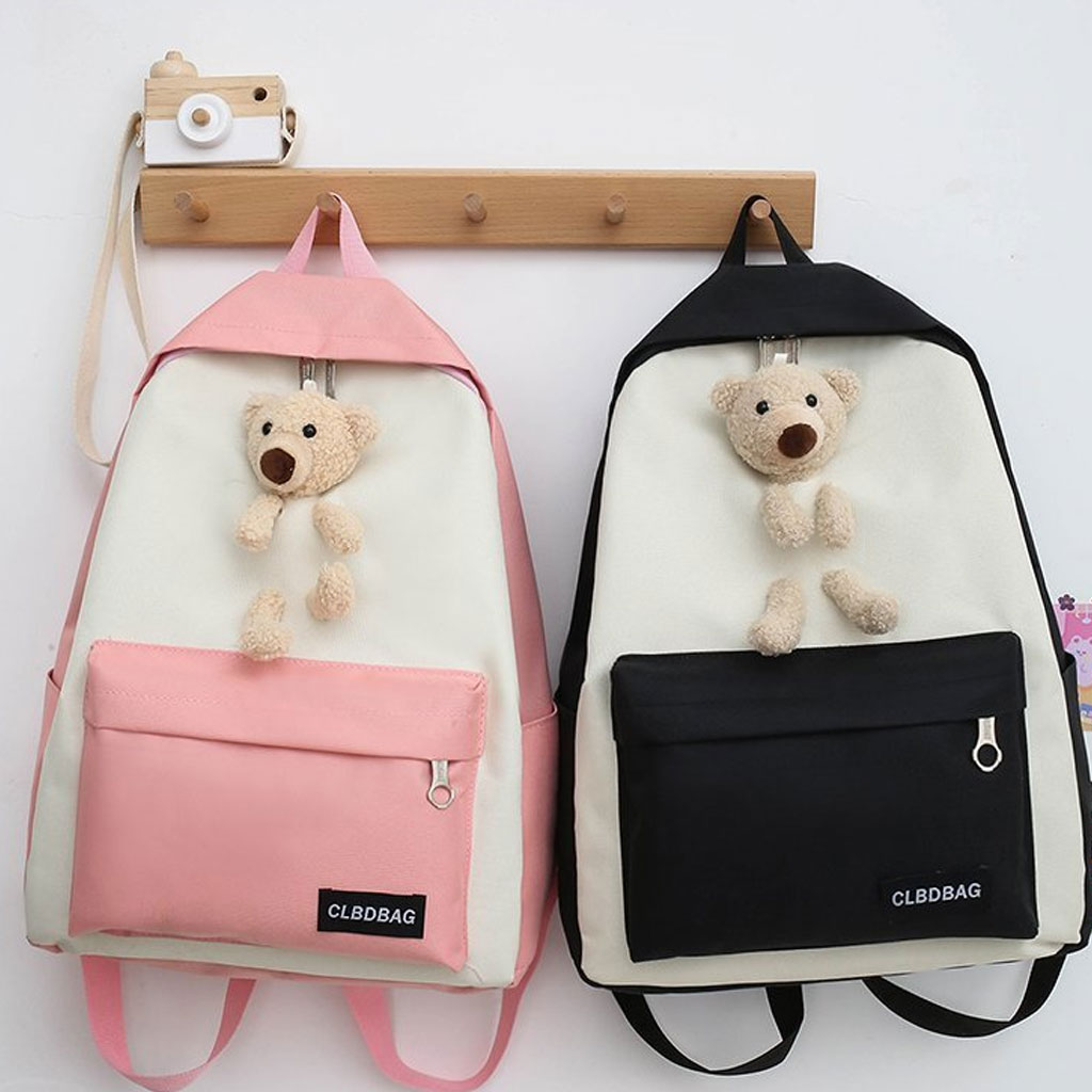 Sac À Dos Scolaire Ours 4pcs en toile pour Adolescents Et Filles