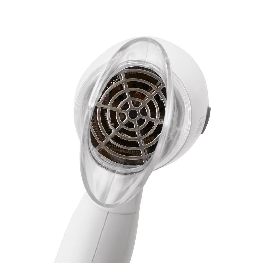 Un petit séchoir touristique d'une puissance de 1200 W avec une poignée pliable. Fabriqué en matériaux solides. Il a une gradation de force du vent. Le plus grand avantage d'un sèche-linge de voyage est sa compacité : grâce à la poignée pliable, il ne prend pas trop de place. C'est une solution idéale pour les petites salles de bains et pour les voyageurs. Le sèche-linge est léger et maniable.