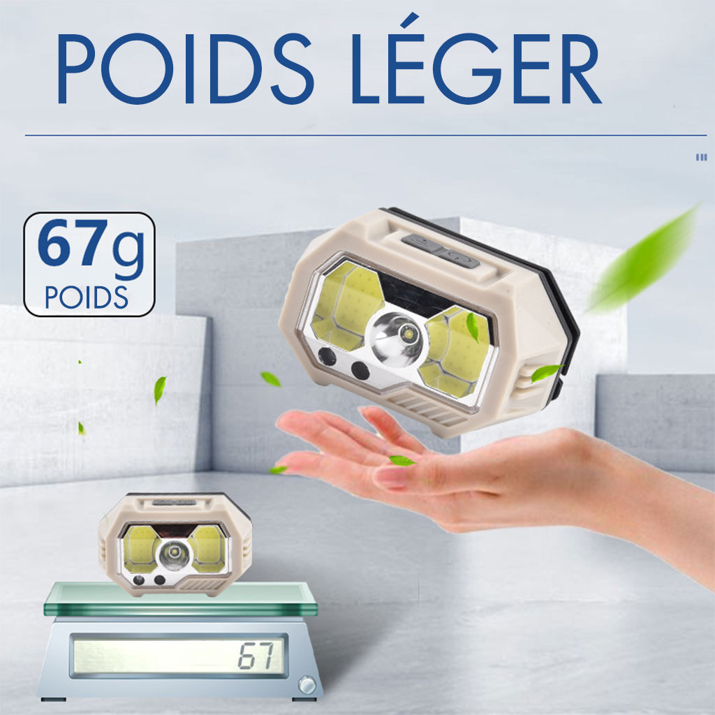 Interrupteur multifonction : appuyez sur l'interrupteur à induction pour activer le mode induction. Appuyez sur l'interrupteur d'alimentation pour passer en mode manuel. Détection sensible, détection d'onde, utilisant un dispositif de détection infrarouge de haute qualité, onde pour contrôler l'interrupteur des phares. • Fonction puissante : conception à double source de lumière, réglage de l'angle à 90 °, batterie étanche de grande capacité, chargement intelligent USB, pour répondre aux besoins de différentes scènes de lumière. • Angle réglable : les angles supérieur et inférieur de la tête de lampe peuvent être ajustés, et il n'y a pas d'angle mort pour un éclairage à 90 degrés, afin de répondre à vos besoins en matière de différents angles d'éclairage. • Portable et petit : mini et portable, facile à utiliser, sans crainte du vent et de la pluie, adapté pour l'exploration, la course de nuit, le camping, l'entretien, la randonnée, etc. Les phares intelligents légers libèrent vos mains.