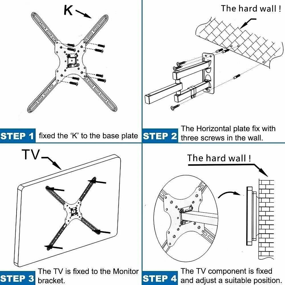 هيكل فولاذي متين: مصنوع من مواد عالية الجودة تضمن ثبات الشاشة وأمانها التام على الجدار لفترات طويلة.