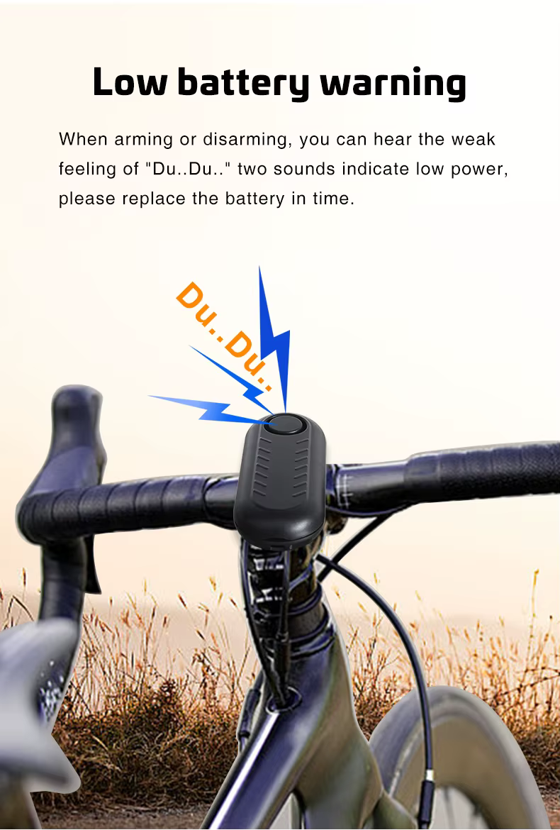 [Remarque importante] Assurez-vous que l'alarme est synchronisée avec la télécommande avant sa première utilisation, car sinon, la télécommande ne sera pas opérationnelle. Pour commencer, insérez les piles et appuyez rapidement sur le bouton « Réglage » dans les 8 secondes pour lancer le processus de couplage. Vous pouvez coupler jusqu'à huit télécommandes ; tout couplage supplémentaire remplacera automatiquement le premier de la séquence. • [Système d'alarme de sécurité polyvalent] Ce système d'alarme avancé, équipé d'un capteur de vibrations, est conçu pour répondre à une large gamme d'applications. Il est parfait pour les véhicules tels que les vélos électriques, les motos, les scooters, les voitures, les remorques et les voiturettes de golf, servant d'accessoire essentiel pour une sécurité accrue. Au-delà des véhicules, il offre une solution antivol robuste pour les effets personnels comme les boîtes aux lettres, les bagages et la protection des portes et des fenêtres. • [Télécommande sans fil et conception résistante aux intempéries] Cette alarme est dotée d'une télécommande sans fil pour une utilisation facile dans une portée généreuse de 328 pieds. Trouvez rapidement votre véhicule avec la fonction de recherche ou utilisez le générateur de bruit en cas d'urgence. Sélectionnez votre son d'alerte parmi trois options. Classé IP65, il est conçu pour une utilisation par tous les temps, tout en conservant sa fonctionnalité à l'extérieur. • [Paramètres de volume et de sensibilité personnalisables] L'alarme permet un contrôle du volume personnalisé avec trois niveaux différents, garantissant que l'alarme n'est ni trop intrusive ni trop subtile. De plus, la sensibilité peut être réglée sur sept niveaux, d'un toucher léger à des impacts plus puissants, offrant une flexibilité pour adapter la réponse de l'alarme à vos besoins spécifiques. • [Alarme à décibels élevés et performances supérieures] Équipé pour produire une puissante alarme de 110 décibels, ce système est conçu pour dissuader efficacement les voleurs potentiels. L'utilisation d'une technologie d'économie de batterie de quatrième génération et d'une technologie de capteur de pointe garantit que cette alarme antivol offre des performances et une fiabilité exceptionnelles. • [Fonction SOS et installation sans effort] Intégrant des algorithmes de mouvement avancés et des capteurs précis, l'alarme est capable de déclencher une réponse SOS en cas de chute ou lorsqu'une aide est nécessaire. Cette fonction peut être facilement activée ou désactivée selon vos préférences. Le processus d'installation est incroyablement simple, ne nécessitant qu'un autocollant double face et une sangle pour une fixation sécurisée. Cela en fait un choix idéal pour une installation rapide et sans tracas.