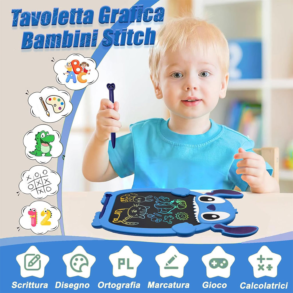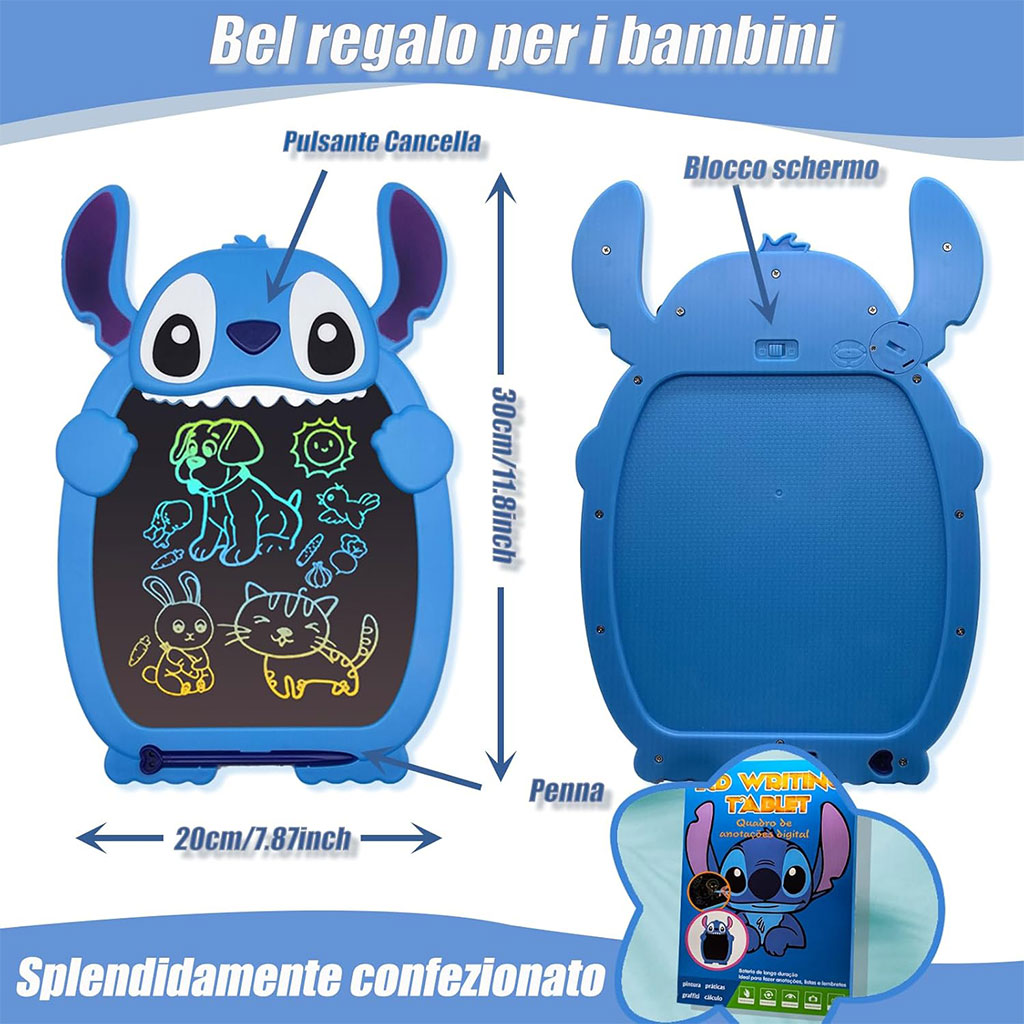 Stitch Tablet d'écriture LCD pour Enfants 12 Pouces - Bleu