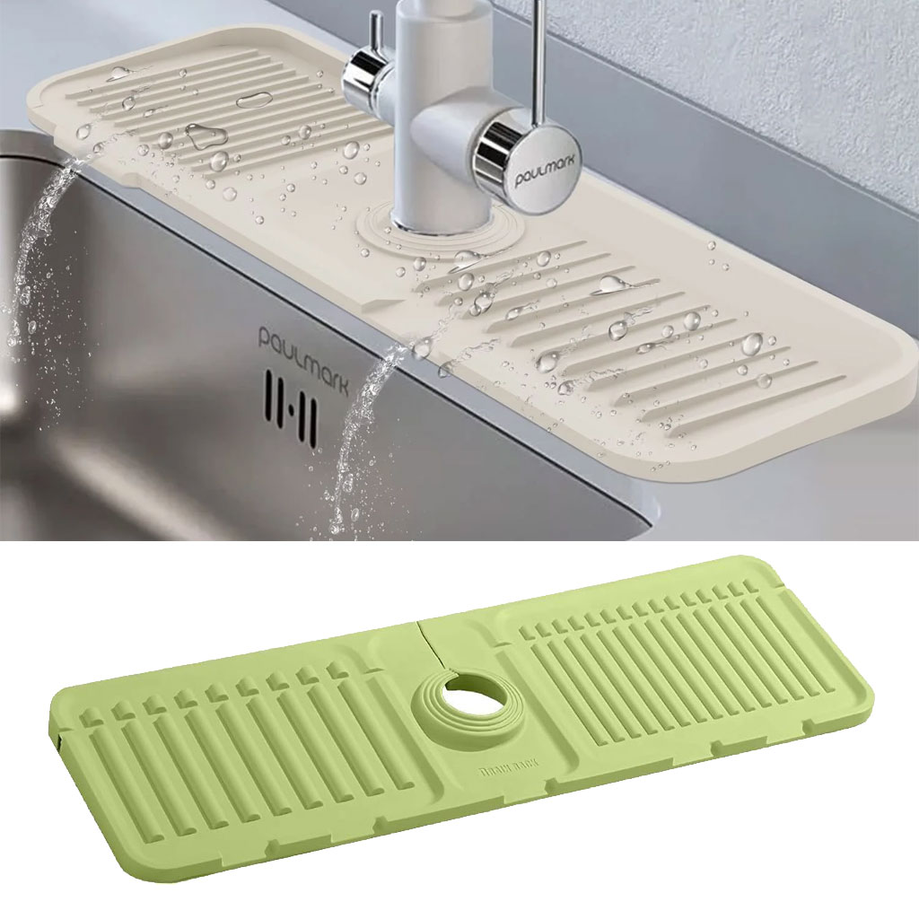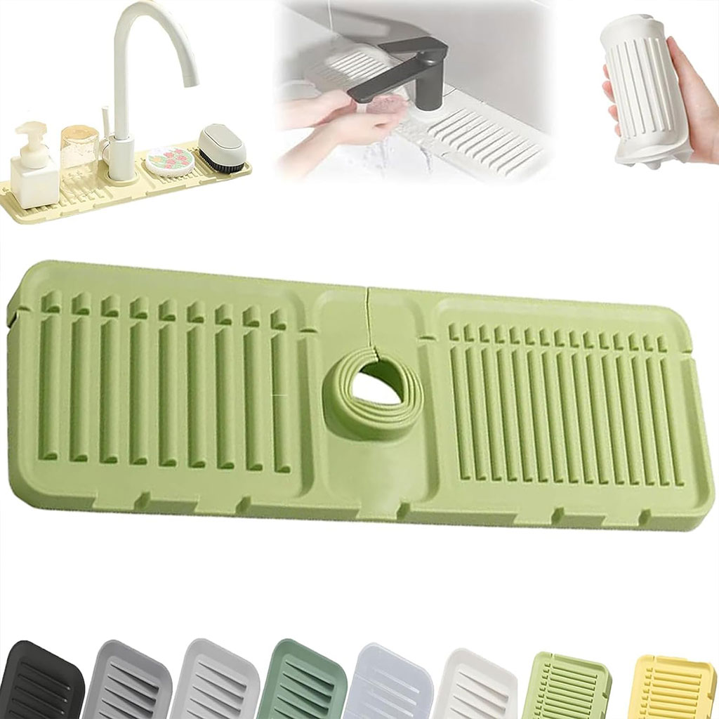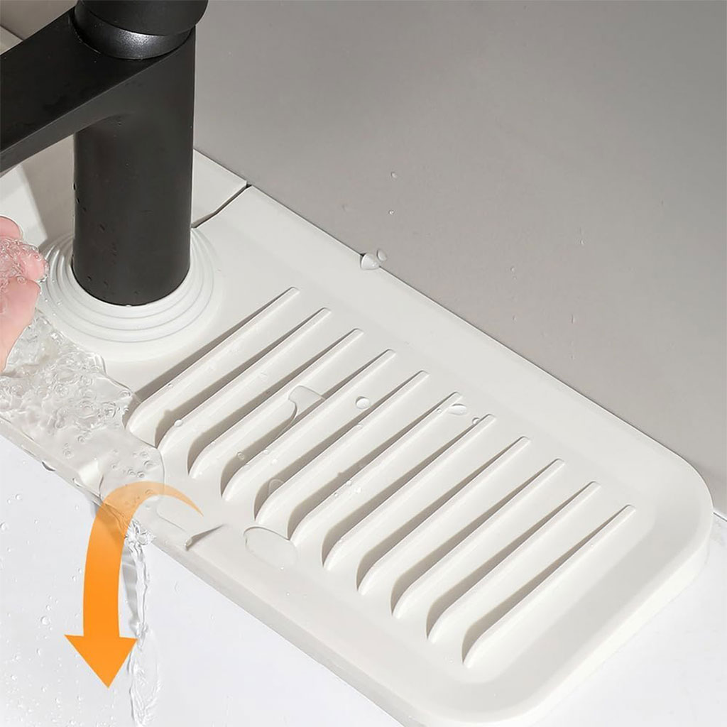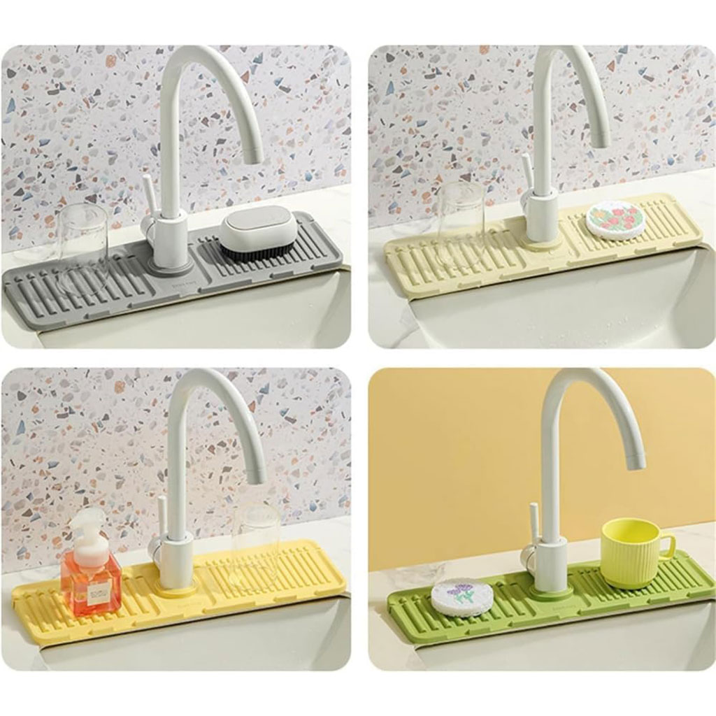 استخدامات متعددة (4 في 1): بساط واحد بمهام كثيرة! يمكنك استخدامه كقاعدة تجفيف حول الصنبور، رف لتنظيم إسفنجات المطبخ، حامل لصابون الأطباق، أو منظم لأدوات الحمام.
