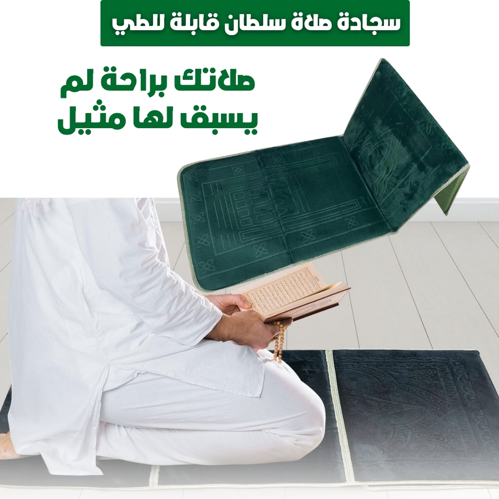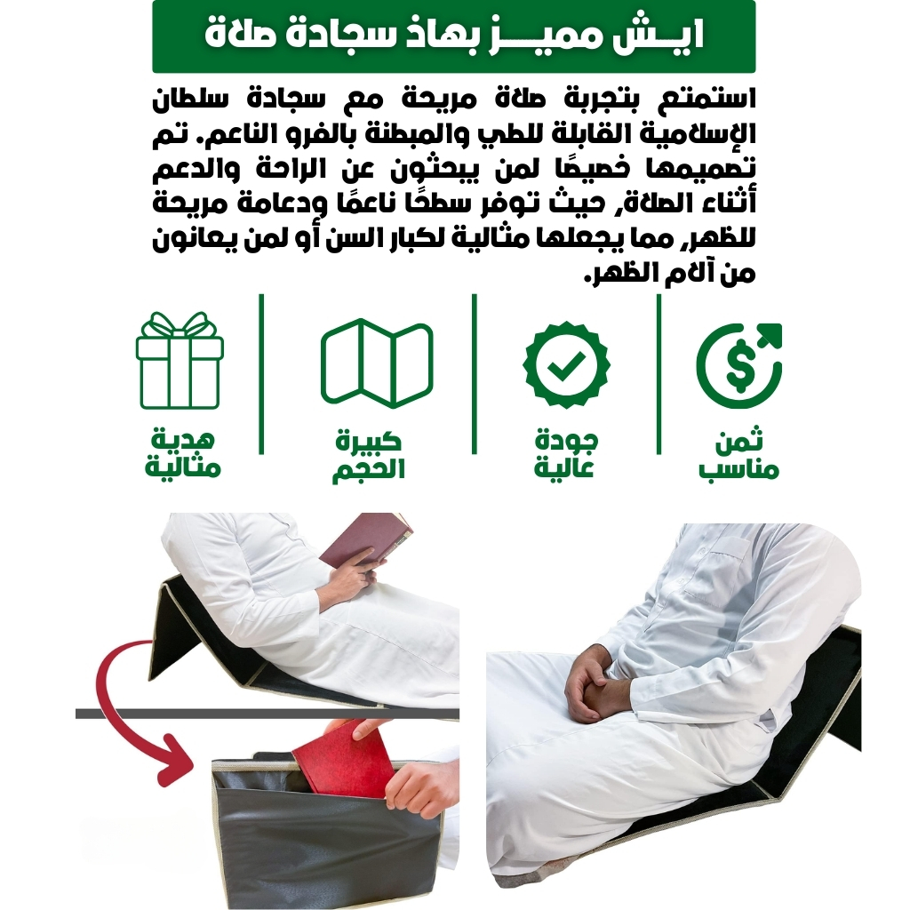 Tapis de Prière Sultan Pliable avec Dossier et Poche Arrière V2 – سجادة صلاة سلطان قابلة للطي مع مسند ظهر