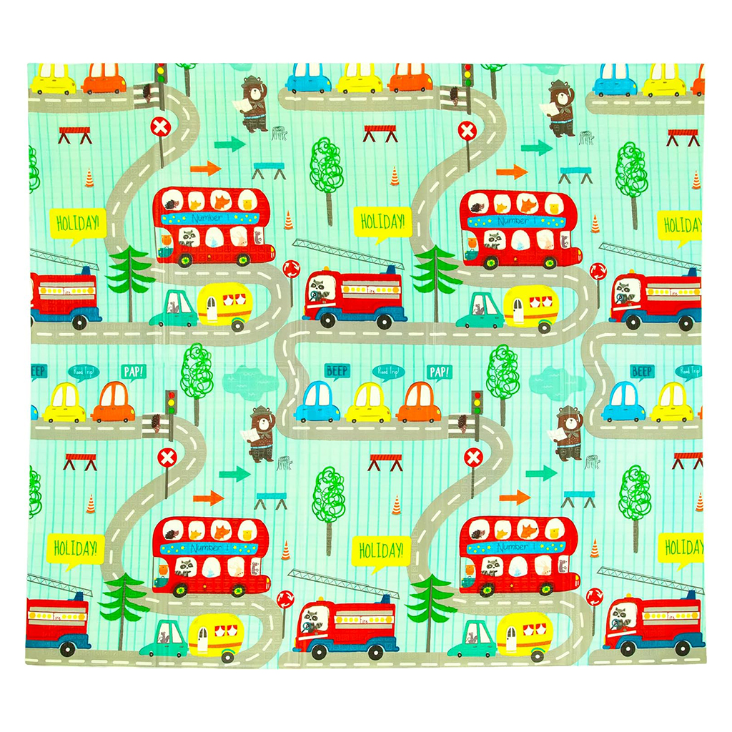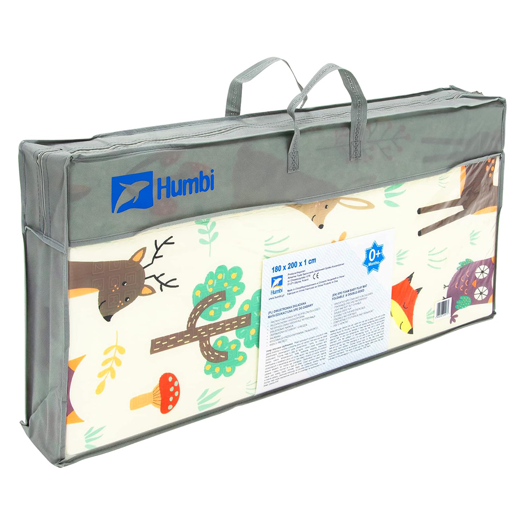 Ce tapis éducatif coloré de Humbi est la base idéale pour jouer avec votre enfant. Il est doux et flexible, offrant un amorti parfait en cas de chute, ce qui en fait un endroit confortable et sûr pour jouer. • Il est fait d’un matériau durable qui est la mousse XPE. Il se caractérise non seulement par une durabilité exceptionnelle, mais également par un amorti et une flexibilité élevés, ainsi que par une bonne isolation thermique, qui l'empêche de chauffer ou de refroidir. La mousse XPE est non toxique et respectueuse de l'environnement. • Le tapis a des dimensions de 200 x 180 x 1 cm, ce qui offre beaucoup d'espace pour jouer, ramper ou marcher. De superbes graphismes des deux côtés constitueront un endroit intéressant pour un jeu créatif et un remplacement pratique pour un tapis. Le tapis coloré double face a une texture antidérapante avec des lettres et des chiffres, qui peuvent être utilisés par les enfants plus âgés pour apprendre l'alphabet. • Caractéristiques du tapis : pliable, impression recto-verso, sans âge, dès les premiers jours de la vie de l'enfant, grand format 200 x 180 cm, 1 cm d'épaisseur, 100 % sans danger pour les enfants (matériau XPE sûr ; conforme aux normes de sécurité de l'UE). normes), ne contient ni formamide, ni phtalates, ni PVC, ni bisphénol A, inodore, imperméable, durable, isole des sols froids, absorbe, facile à nettoyer. • Le tapis a une impression recto-verso avec des images intéressantes pour l'enfant. D'un côté se trouve un graphique avec de jolis animaux dans la forêt. L'autre face du tapis contient des images de rues colorées sur fond turquoise. tapis sans limite d'âge, dès les premiers jours de la vie ; emballé dans un sac avec poignées, fermé par une fermeture éclair et expédié dans une boîte en carton solide du fabricant