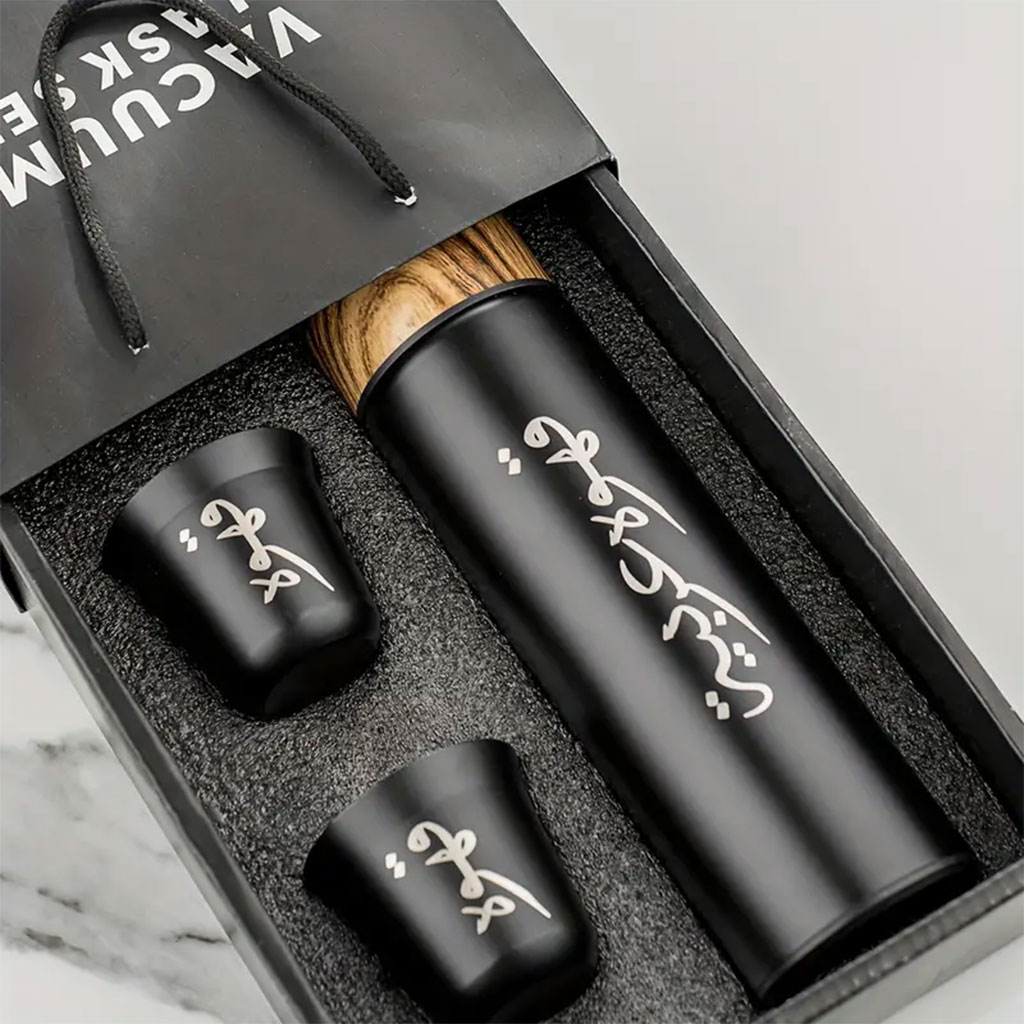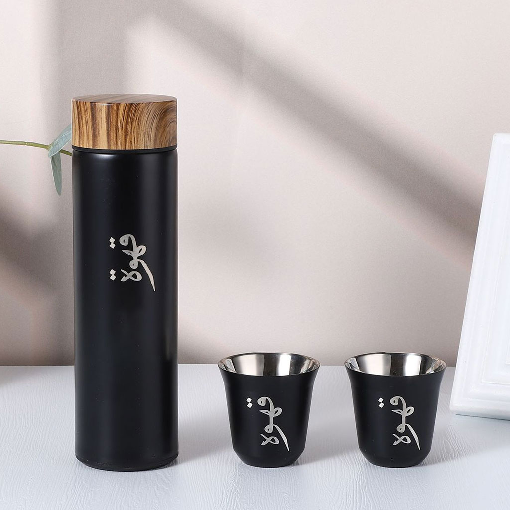 •399 تقييم•تم بيع +271Thermos Isotherme inox avec couvercle à motif en bois et 2 tasses
