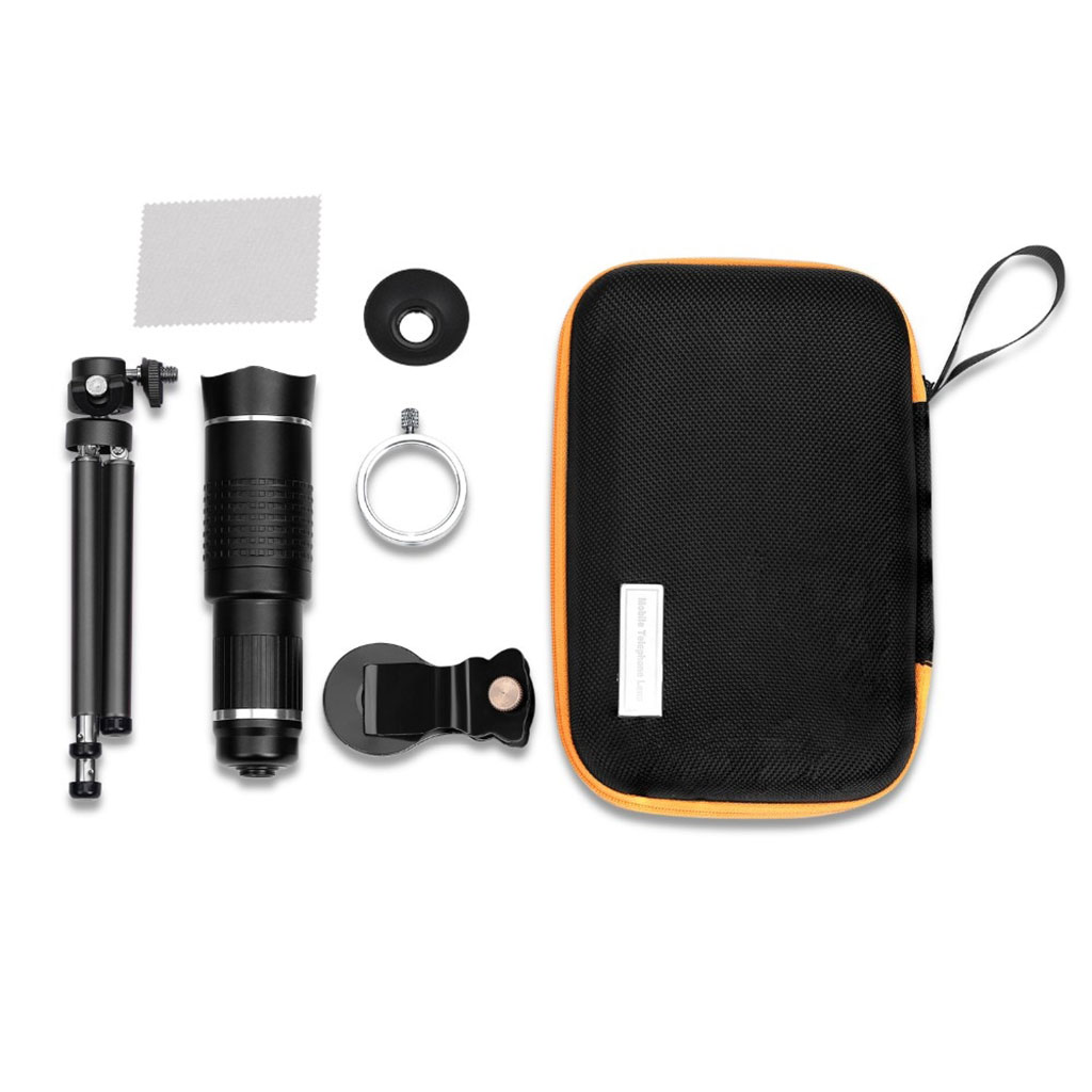 Universel pour téléphone portable, smartphone et tablette - Trépied pour des photos sans tremblement - Chiffon en microfibre pour nettoyer les lentilles • Téléobjectif avec grossissement 20x Mise au point par rotation sur l'anneau de mise au point Capuchon de protection protège la lentille arrière des rayures et des chocs Poids total avec trépied : 282 g • Trépied avec filetage pour visser l'objectif : pour des photos sans tremblement Optique lumineuse : ouverture f/1,8 Boîtier en aluminium solide • Pieds extensibles pour un maintien parfait sur toutes les surfaces Chiffon en microfibre pour nettoyer les lentilles Dimensions de l'objectif (Ø x L) : 37 x 105 mm, clip : 80 x 43 x 19 mm • Objectif avec capuchons de protection, clip de maintien, trépied, chiffon en microfibre, sac de rangement et manuel d'utilisation en allemand. Téléobjectif smartphone - Également pertinent ou adapté pour : support de téléphone portable, support iPad, photographie, jumelles, monoculaires, jumelles, jumelles, télescope, support, téléphone, longue-vue, adaptateur, support