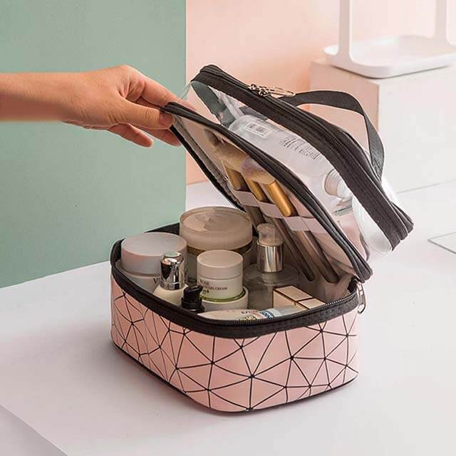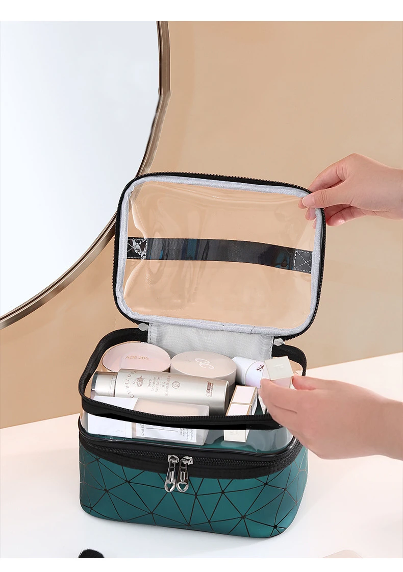 Trousse de maquillage et cosmétiques double couche étanche V1