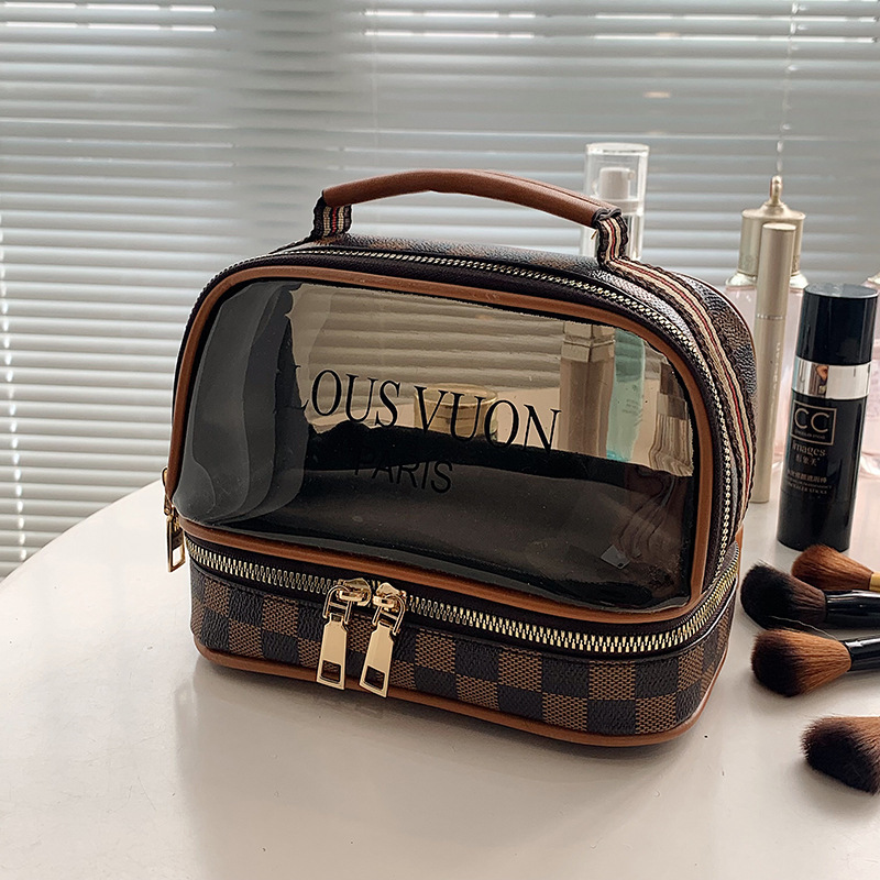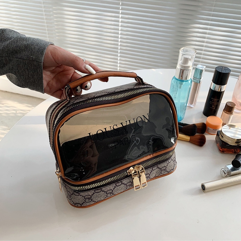 Trousse de toilette transparente double couche pour femmes, sac cosmétique étanche de grande capacité