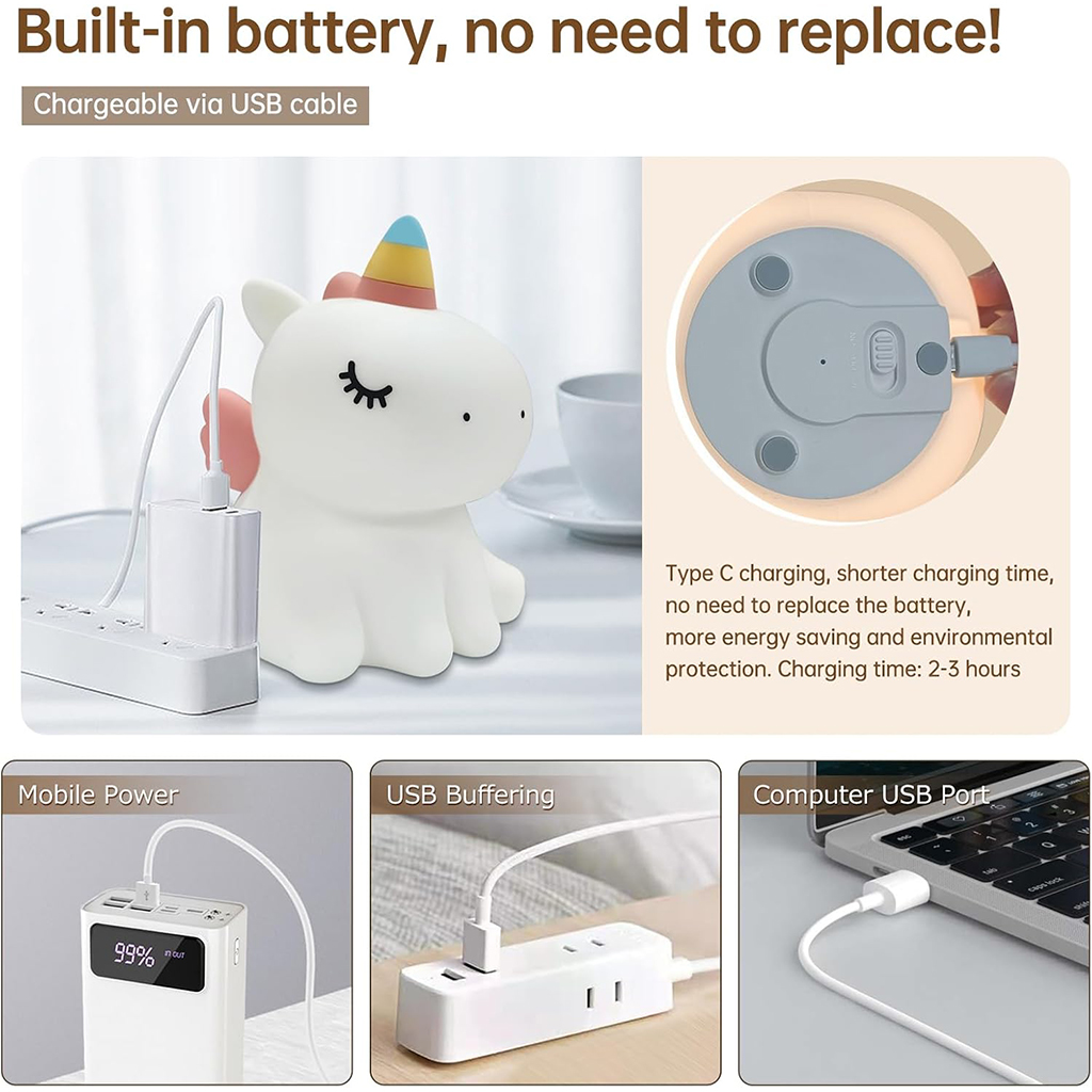 Veilleuse en Silicone Forme Unicorne pour Chambre d'enfant Rechargeable