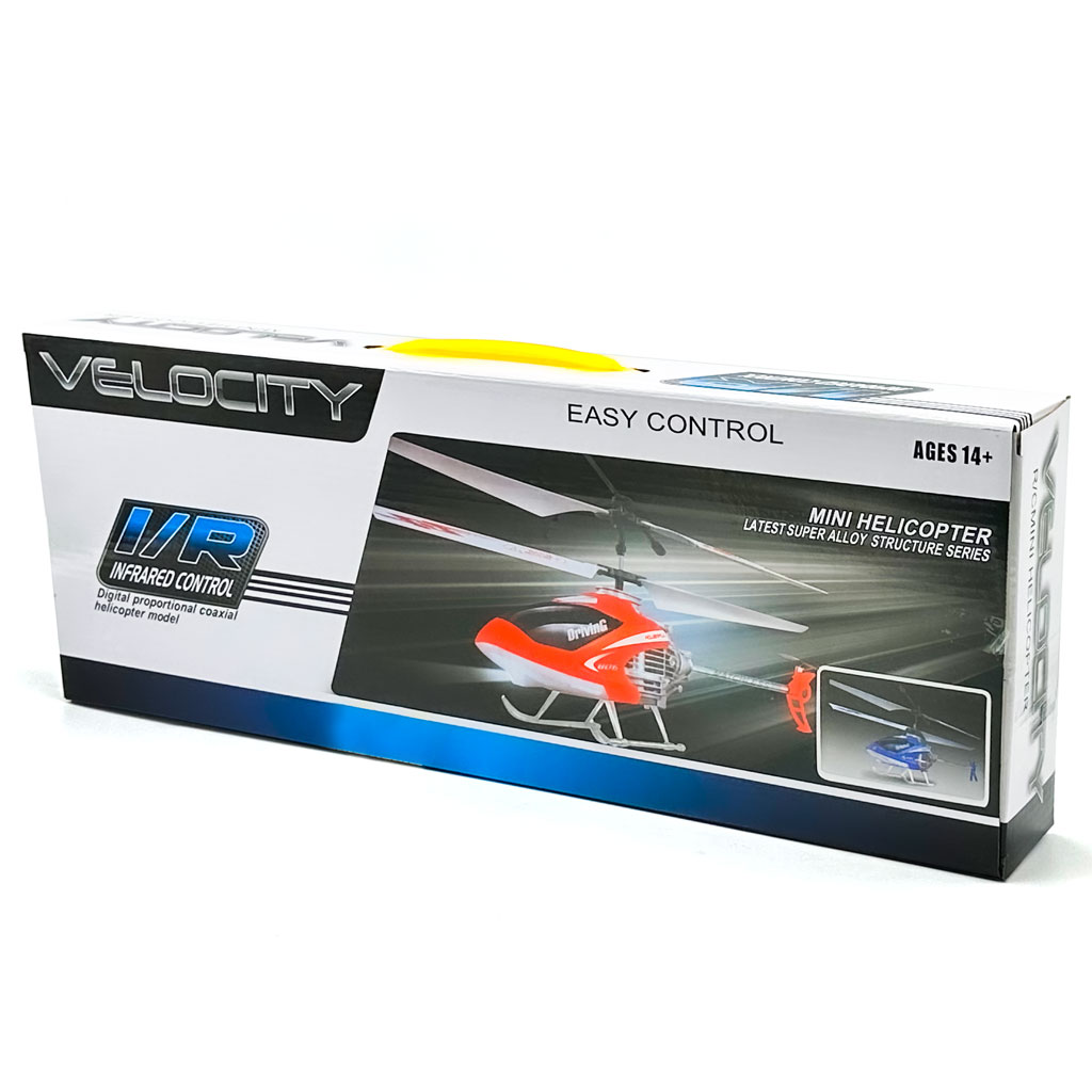 Voici la dernière offre de Velocity , un hélicoptère rechargeable à 2 canaux avec des lames incassables • Batterie : Li-Polymer 3,7 V 180 mAh. Pour télécommande 6 piles AA (non incluses). Cet hélicoptère ne contient pas de caméra et sa portée de vol est inférieure à 10 mètres. • Hélicoptère rechargeable à radiocommande / infrarouge exquis à 3,5 canaux !!! • Poids 300 g | Sans caméra • Hauteur de vol 25 m