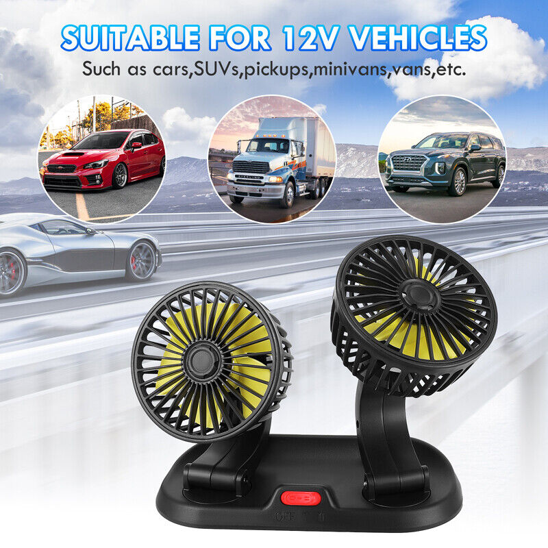 Ventilateur de voiture puissant et silencieux double rotation à 360 -12V