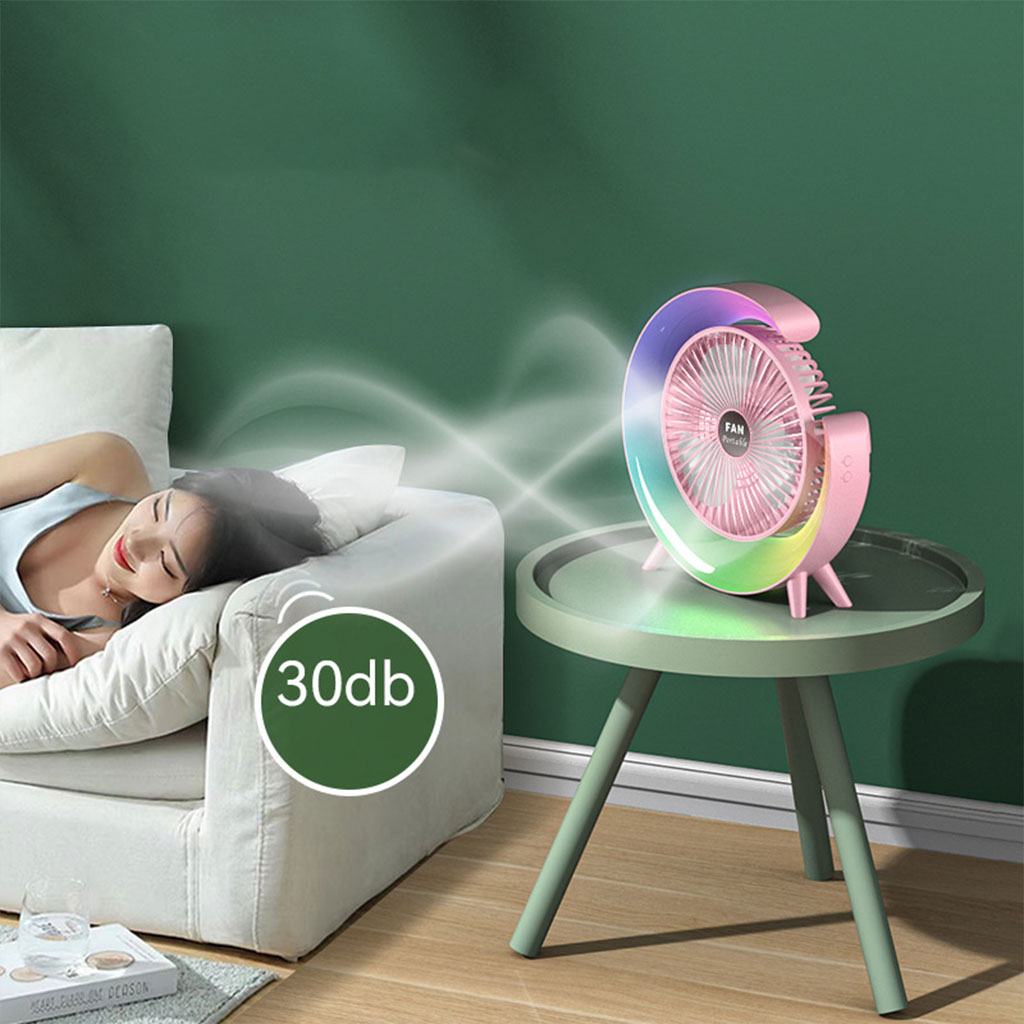 Ventilateur de table portable avec lampe G décorative à LED USB