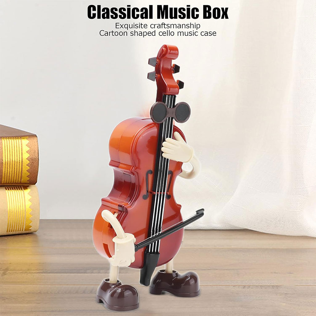 Cadeau idéal : excellent cadeau pour petite amie, femme, bébé, enfants pour le Nouvel An, Noël, un anniversaire, la Saint-Valentin, un anniversaire, etc. • Fonctionnement simple : pas besoin de piles, il suffit de tourner le ressort latéral à la main, ce qui peut jouer une belle mélodie. • Artisanat exquis : un étui à musique pour violoncelle en forme de dessin animé, d'une fabrication exquise, parfait pour les cadeaux, les objets de collection, les décorations, les décorations de table, etc. • Excellent matériau : la boîte à musique classique pour violoncelle est principalement composée de matériaux de haute qualité et possède un mouvement mécanique précis. • Ornement parfait : avec une taille appropriée, vous pouvez le placer où vous voulez sans prendre trop de place.
