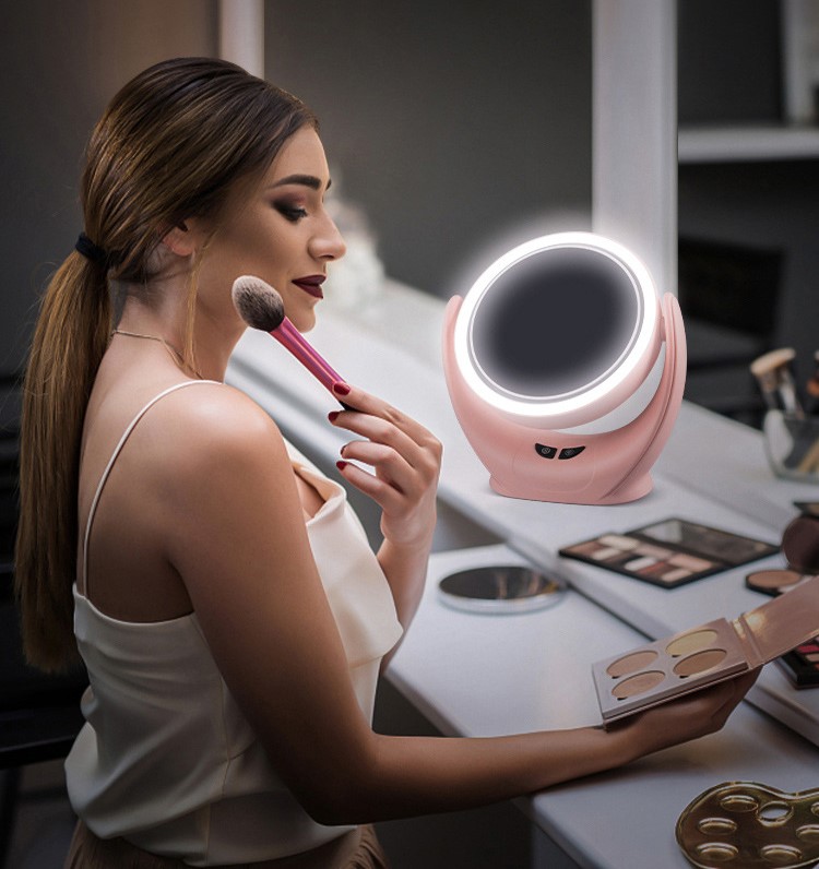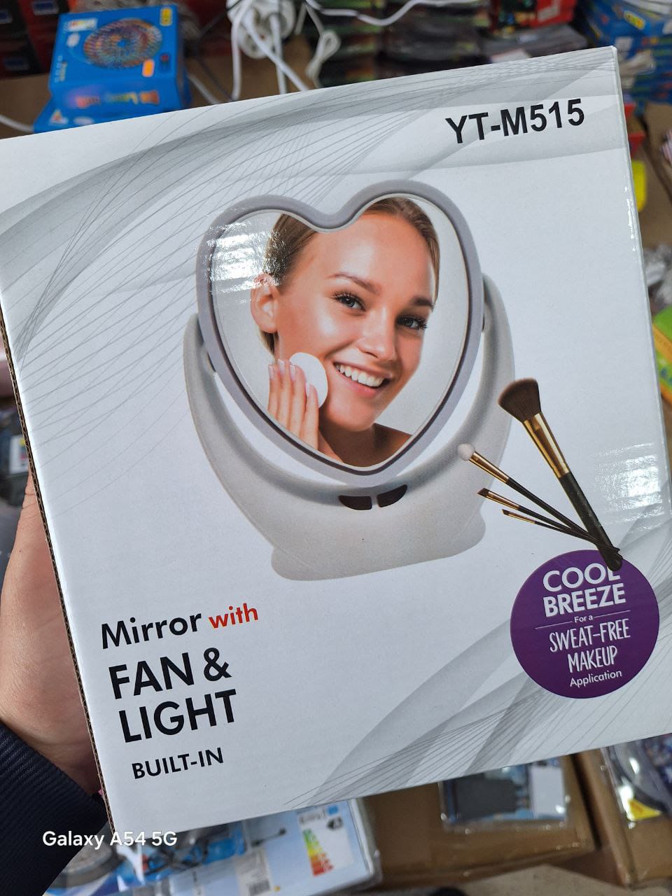 Miroir de maquillage à ventilateur LED 3in1 avec lumière miroir multifonctionnel
