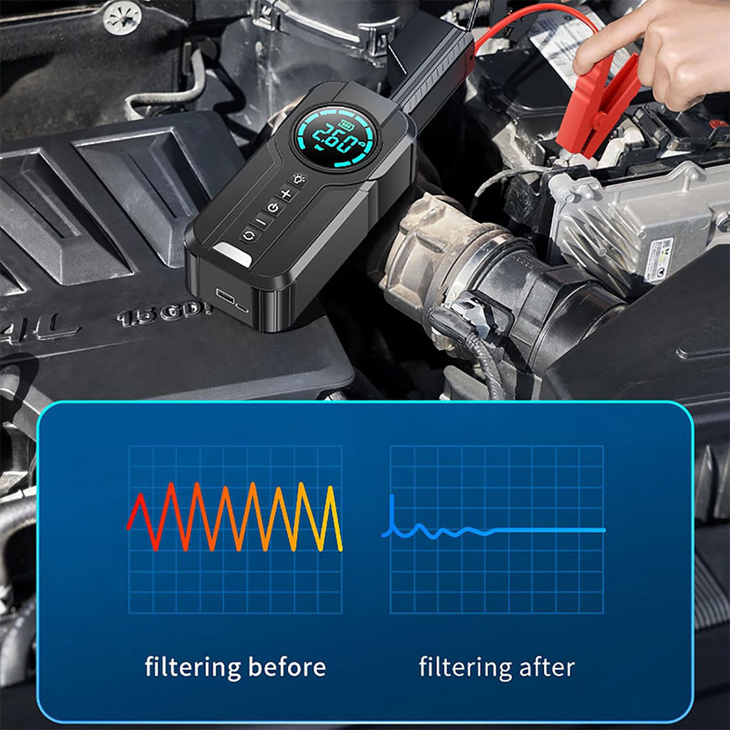 Démarreur d'urgence de voiture : le démarreur d'urgence de voiture peut démarrer votre véhicule 12 V en 3 à 6 secondes, avec un courant de crête de 1000 A et un clip intelligent, la batterie de démarrage d'urgence peut démarrer votre véhicule immédiatement, même dans des environnements extrêmes. • 【GRANDE CAPACITÉ 8400MAH】: La banque d'alimentation portable de la batterie de démarrage d'urgence de la voiture a une grande capacité de 8400mAh, la tension et le courant d'entrée sont de 12V 2A, ce qui peut charger rapidement votre téléphone portable et d'autres produits électroniques, rendant la vie la plus pratique. • 【MULTIFONCTIONNEL】: Le démarreur d'urgence de voiture amélioré est léger et portable, il peut éclairer la route la nuit ou envoyer un signal de détresse; il peut également être utilisé comme gonfleur pour gonfler les pneus en même temps. Avec protection contre les courts-circuits, protection contre les surintensités, protection logicielle et matérielle. • 【NOUVELLE AMÉLIORATION】 : N'a pas peur du froid intense ; résister aux hautes températures en été, transporter en toute tranquillité. Imperméable, moulage monobloc, bonne étanchéité, ne craint pas les intempéries. En cas d'urgence, la tête d'impact à onde de choc peut être utilisée pour briser la vitre.